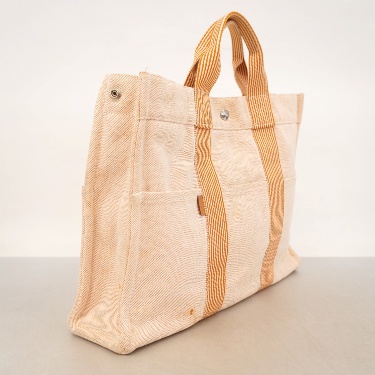 【5me5469】エルメス トートバッグ ニューフールトゥMM キャンバス オレンジ シルバー金具【中古】レディース