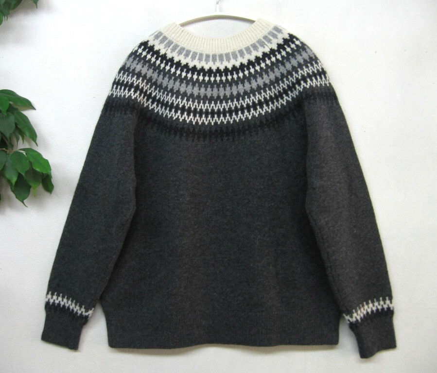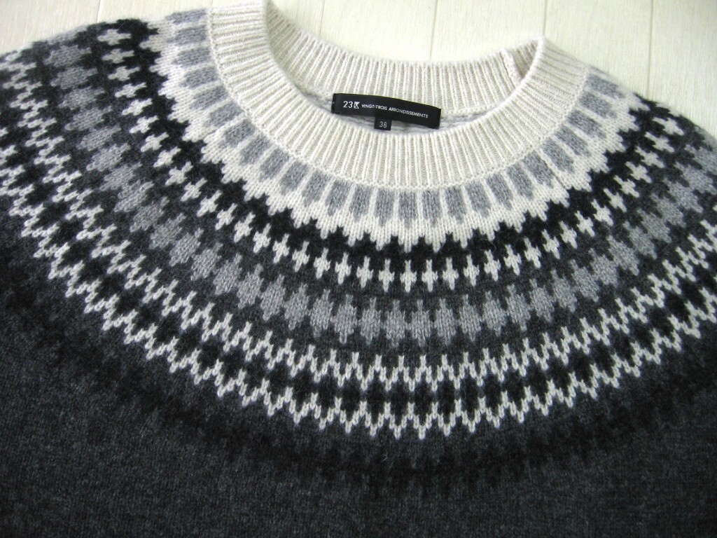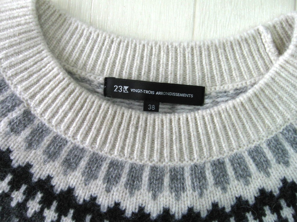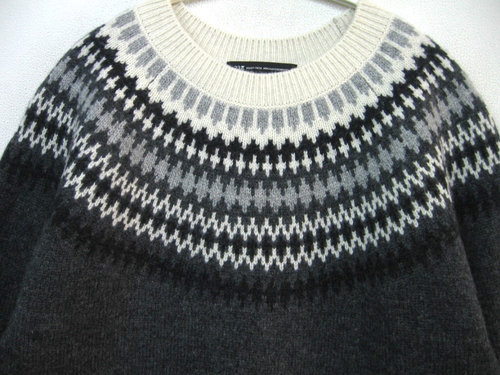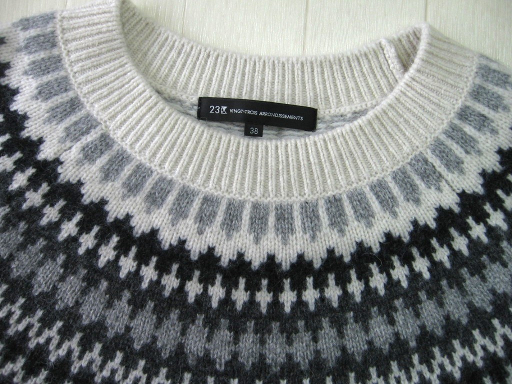 美品♪ 23区 ★ ノルディックデザインニット 38 羊毛 アルパカ混 フェアアイル柄 グレー系
