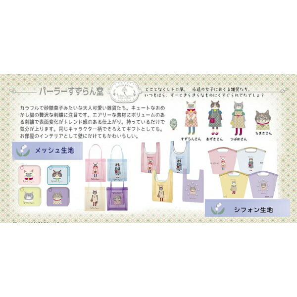◆ パーラーすずらん堂 シフォン生地 サブバッグ ちまきさん柄 ◆ 【当商品の色・サイズ・タイプを必ずご確認ください】 カラー:パープル ※ ご注文後の色・サイズ・タイプの変更はできませんのでご注意下さい。 ※ 他の色・サイズ・タイプは参考写真としてご覧ください。 カラフルで砂糖菓子みたいな大人可愛い雑貨たち。 注:写真はイメージです。 【商品仕様】 |