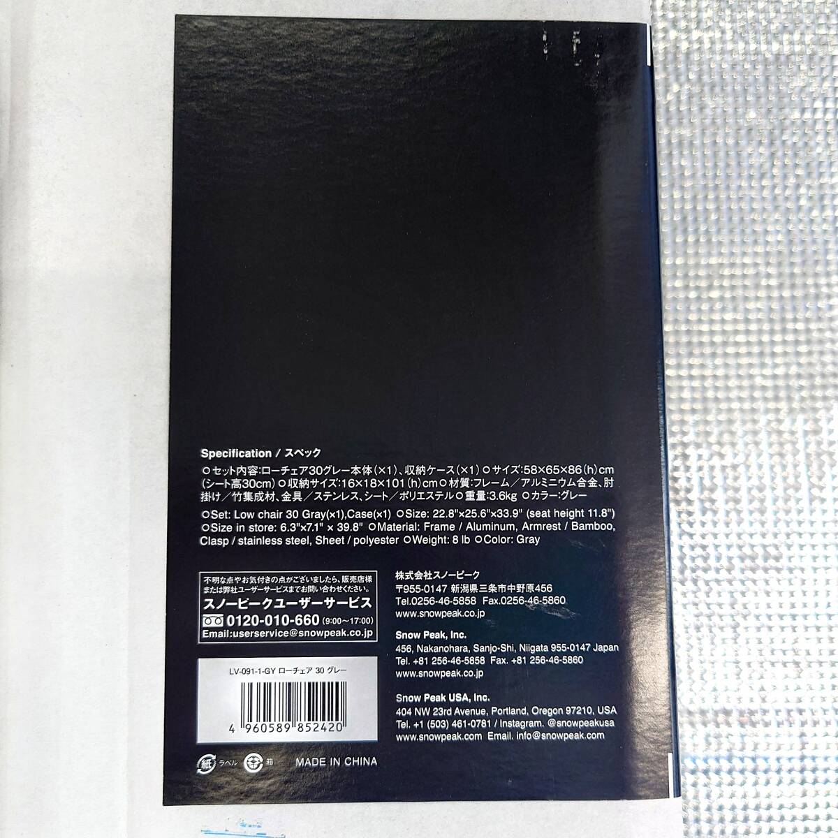 スノーピーク ローチェア30 LIMITED ITEM LV-091-1-GY(グレー)