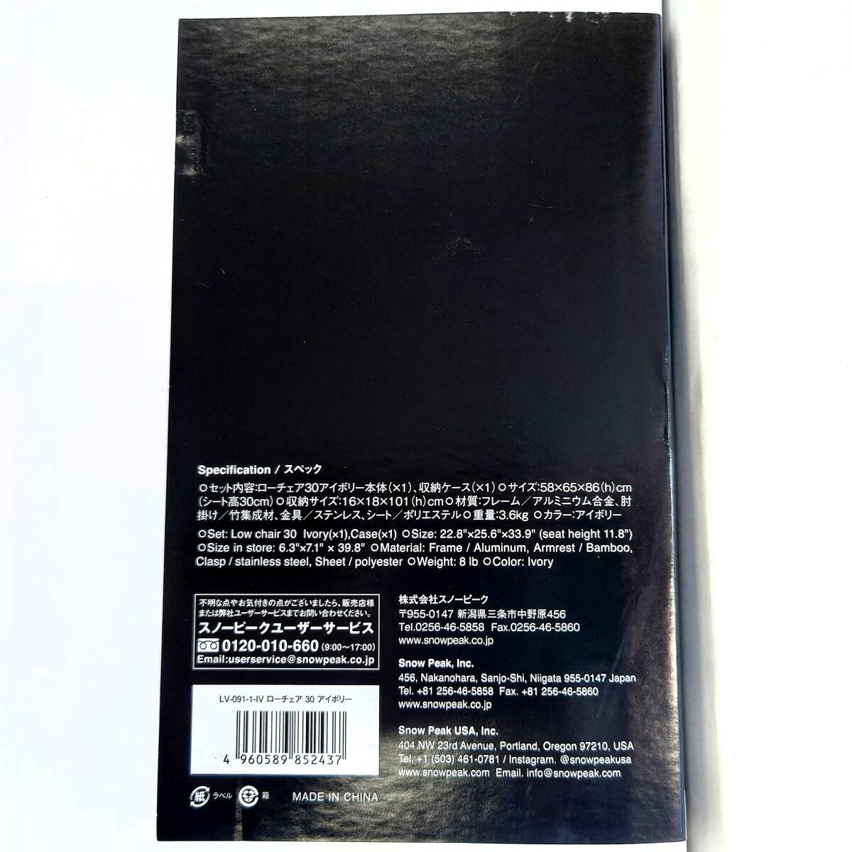 スノーピーク ローチェア30 LIMITED ITEM LV-091-1-IV(アイボリー)