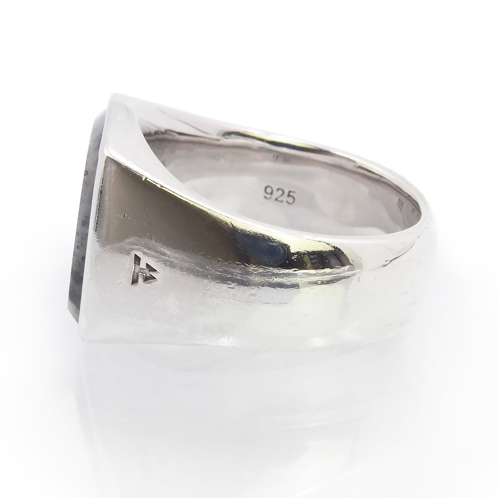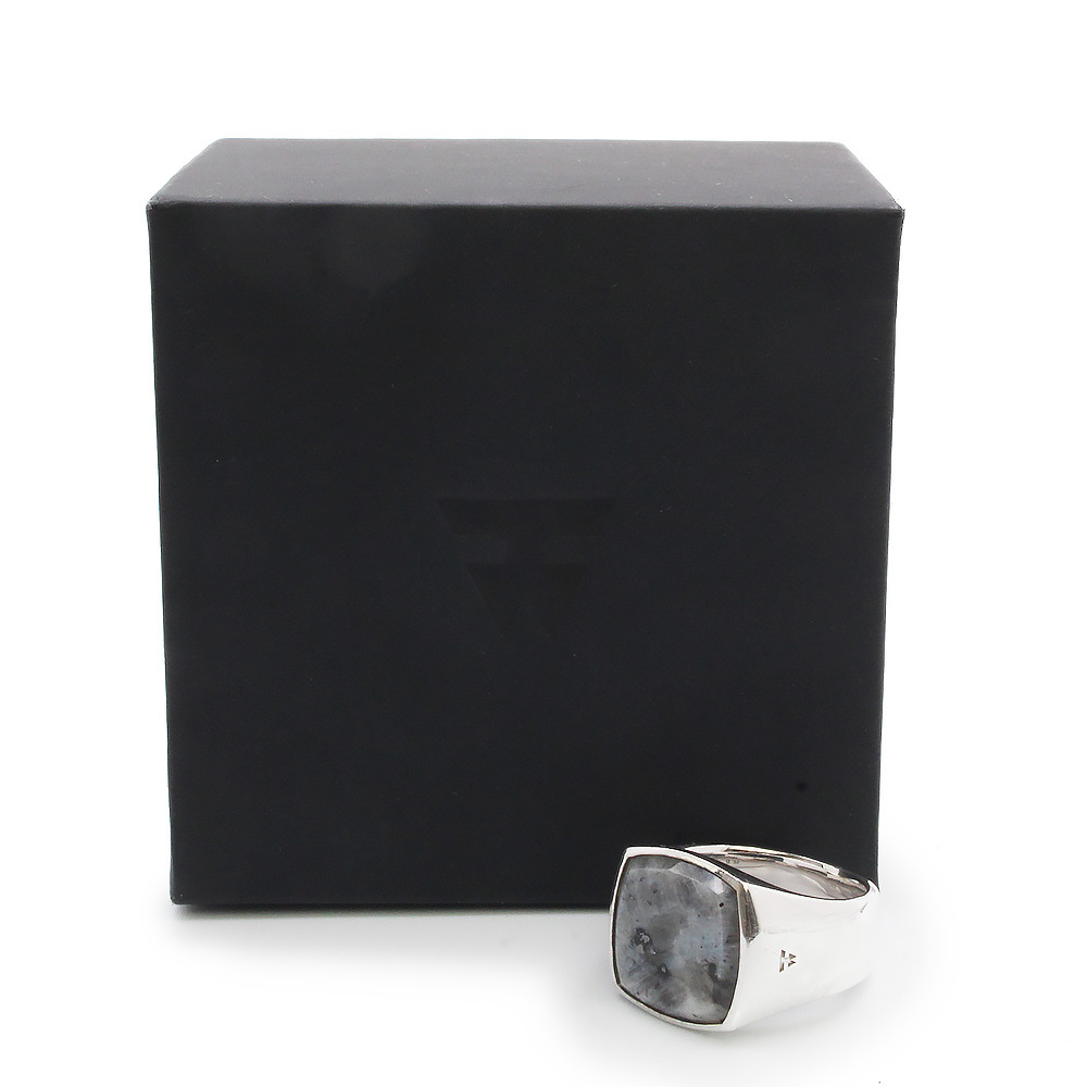 ノルウェー・オスロを拠点に、実用的かつシンプルでオーセンティックなジュエリーを展開するTOM WOOD(トムウッド)。こちらはトップに神秘的なシラー(輝き)が見られるラルビカイトをはめ込んだシグネットリング。傷や酸化による変色を防ぐホワイトロジウム加工を施した、高品質のスターリングシルバー925製です。