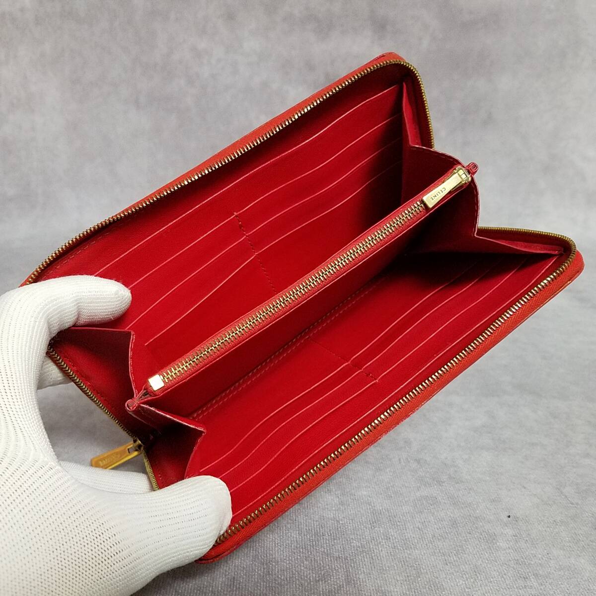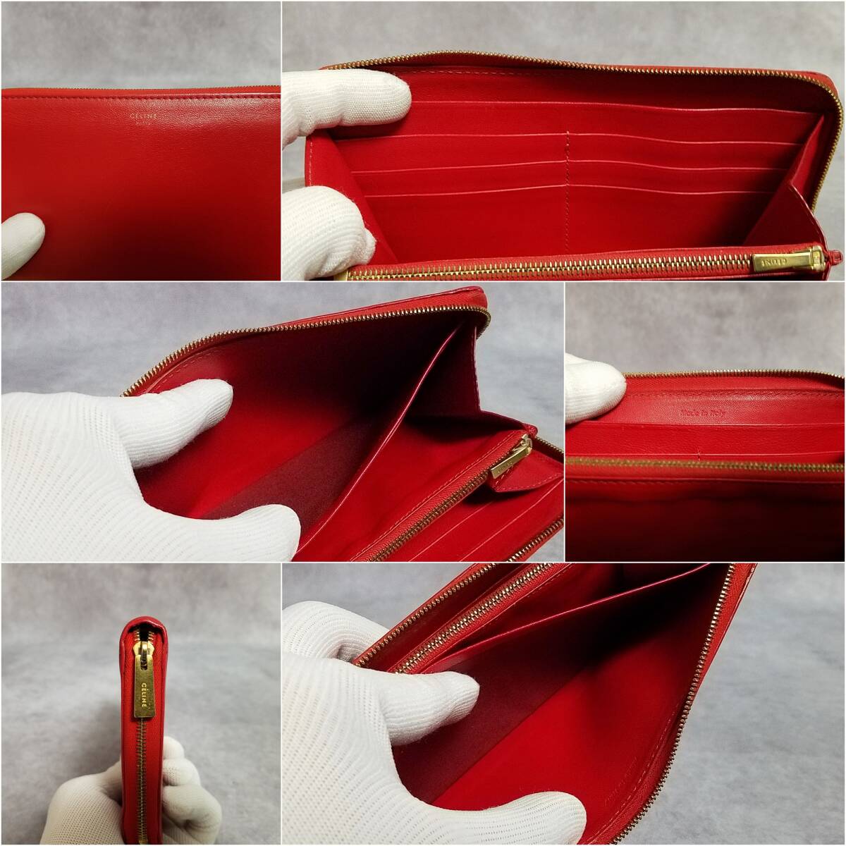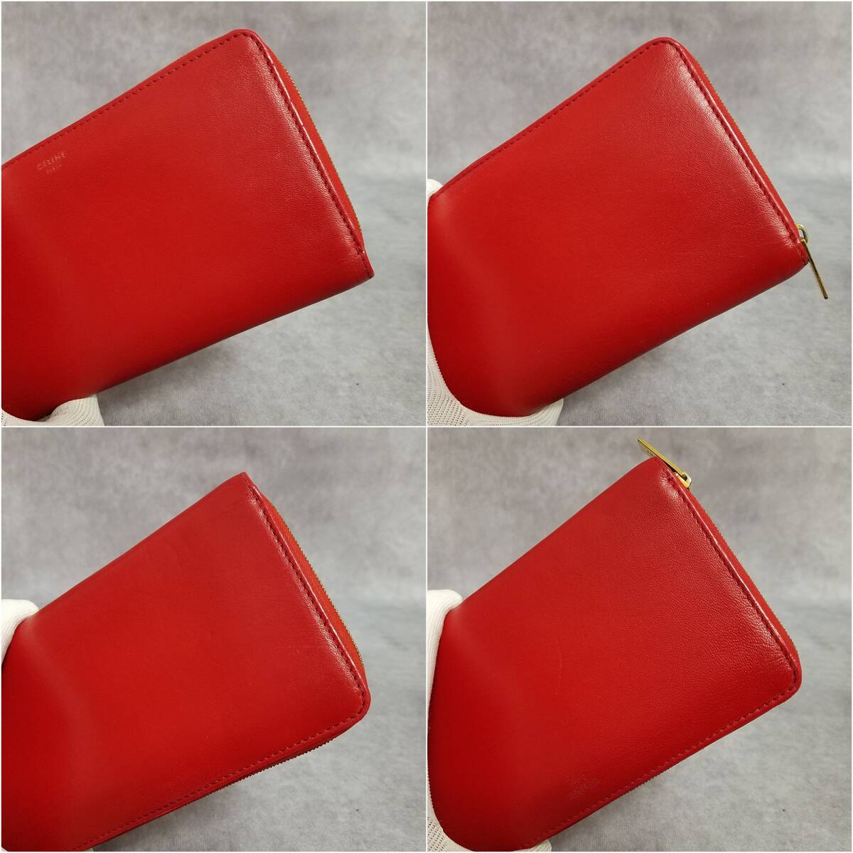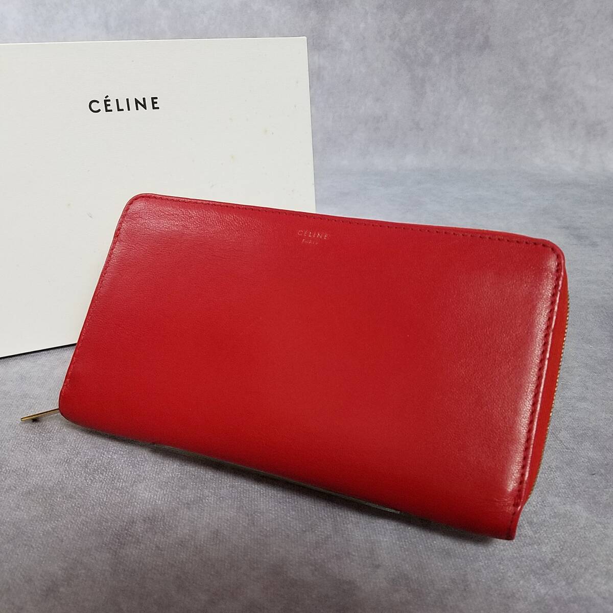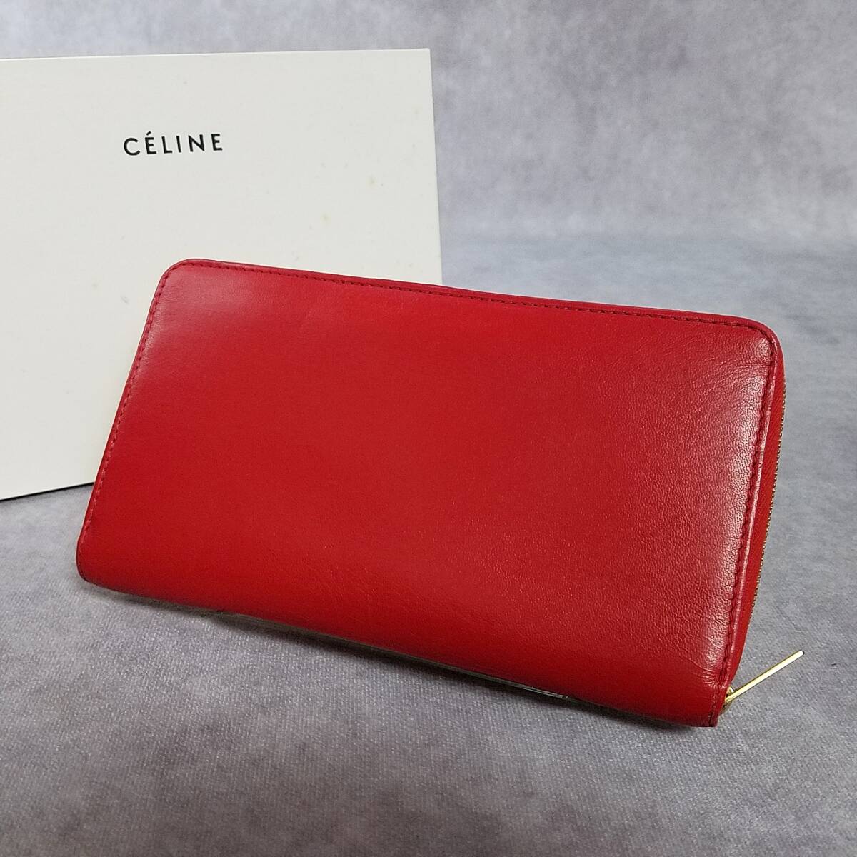 【美品 クリーニング済】 CELINE セリーヌ 正規品 本革 レザー ジップウォレット ラウンドファスナー長財布 保存箱