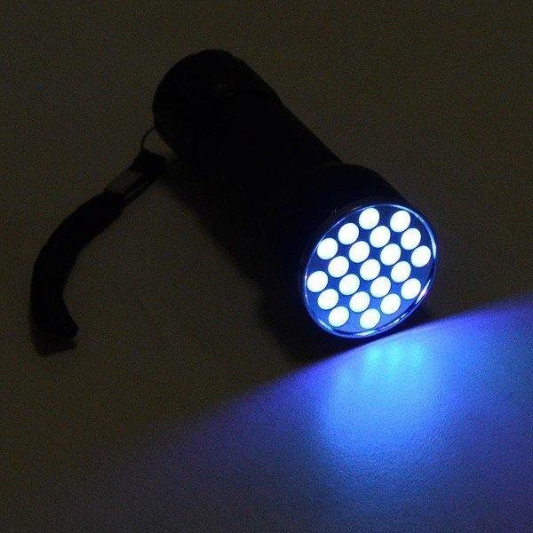 紫外線ライト LED 21灯 懐中電灯 ジェルネイル 硬化 鑑定 検査 偽造 確認 ブラックライト 蛍光 軽量 送料無料 100T◇ 紫外線ライト