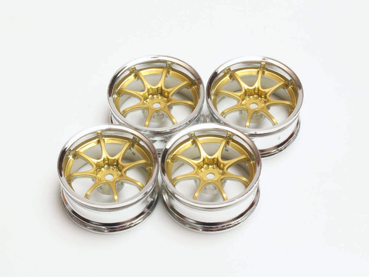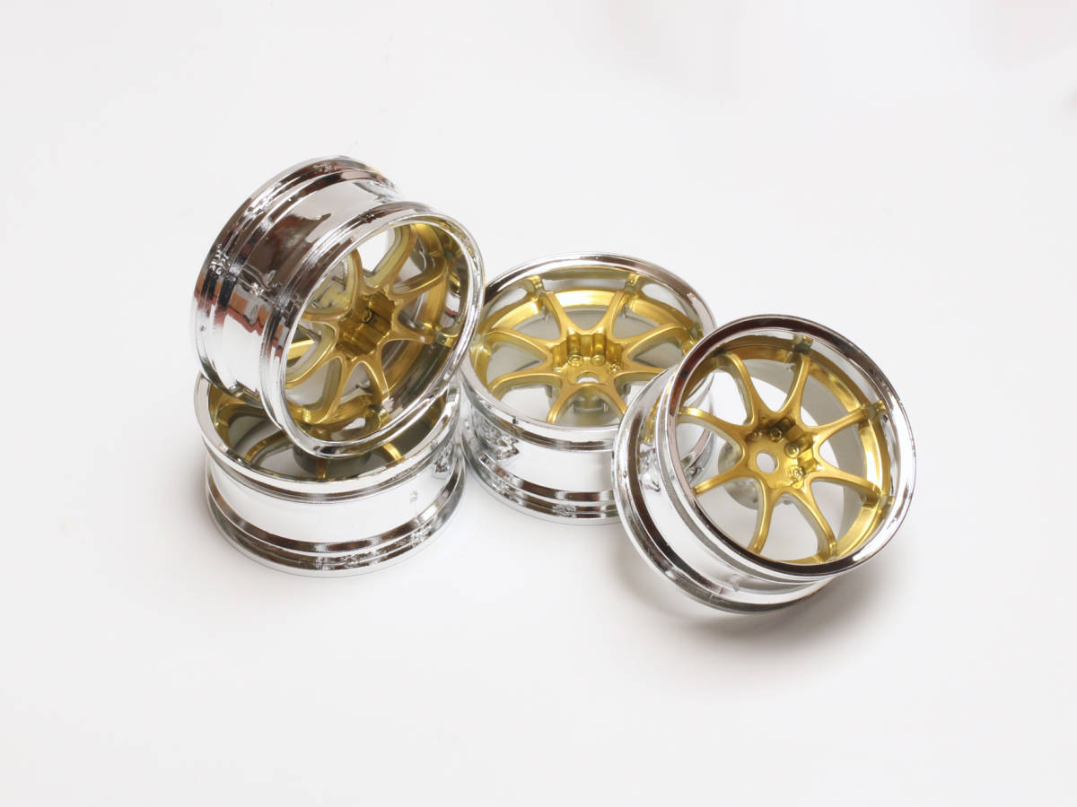 1/10ツーリング向け クローム深リム/ゴールド8スポーク ホイール4本セット