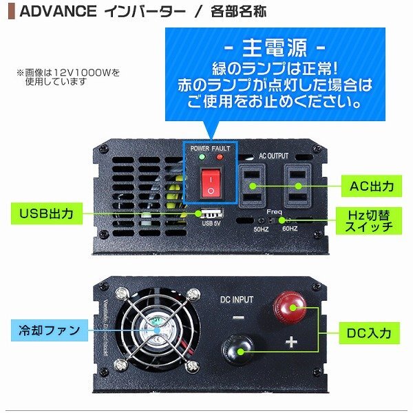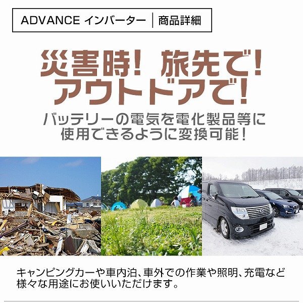 ADVANCE 修正波 車載 電源インバーター USBポート付 |