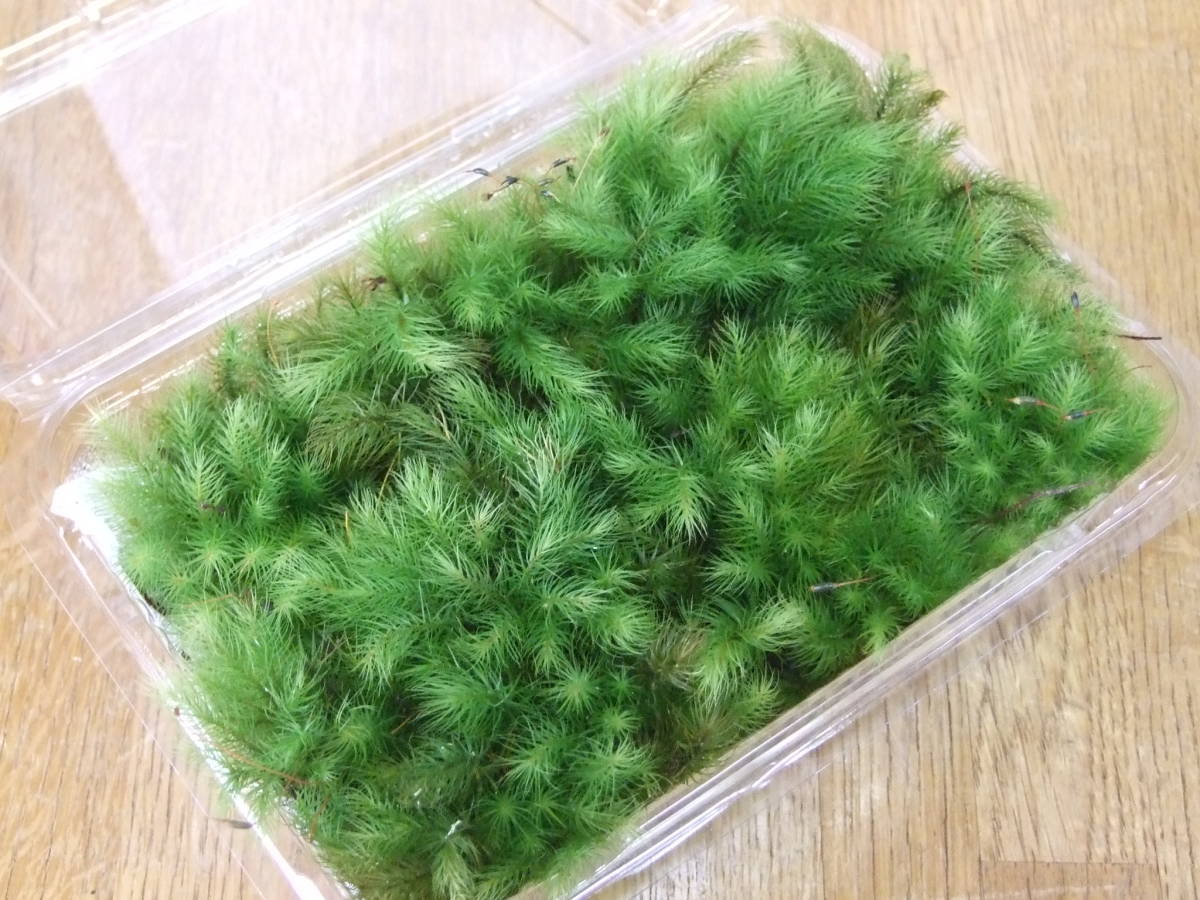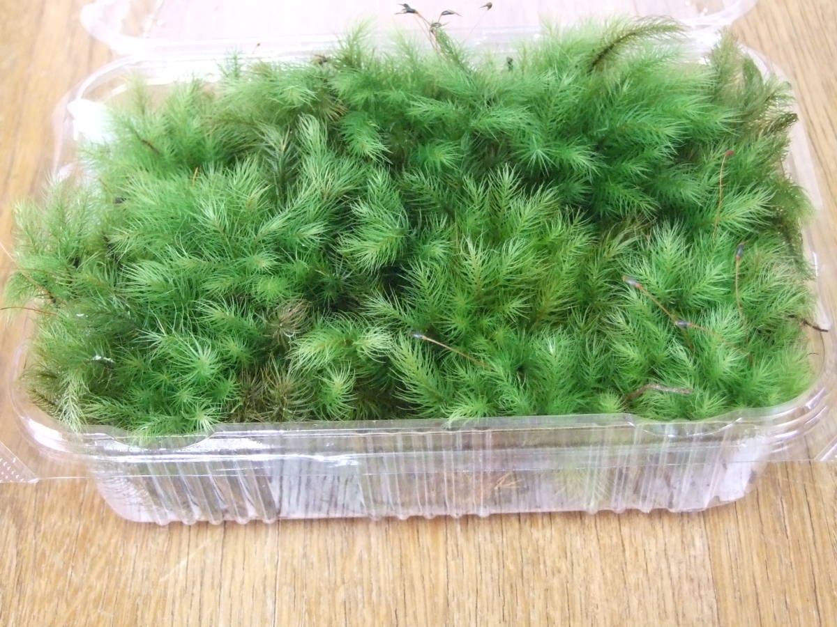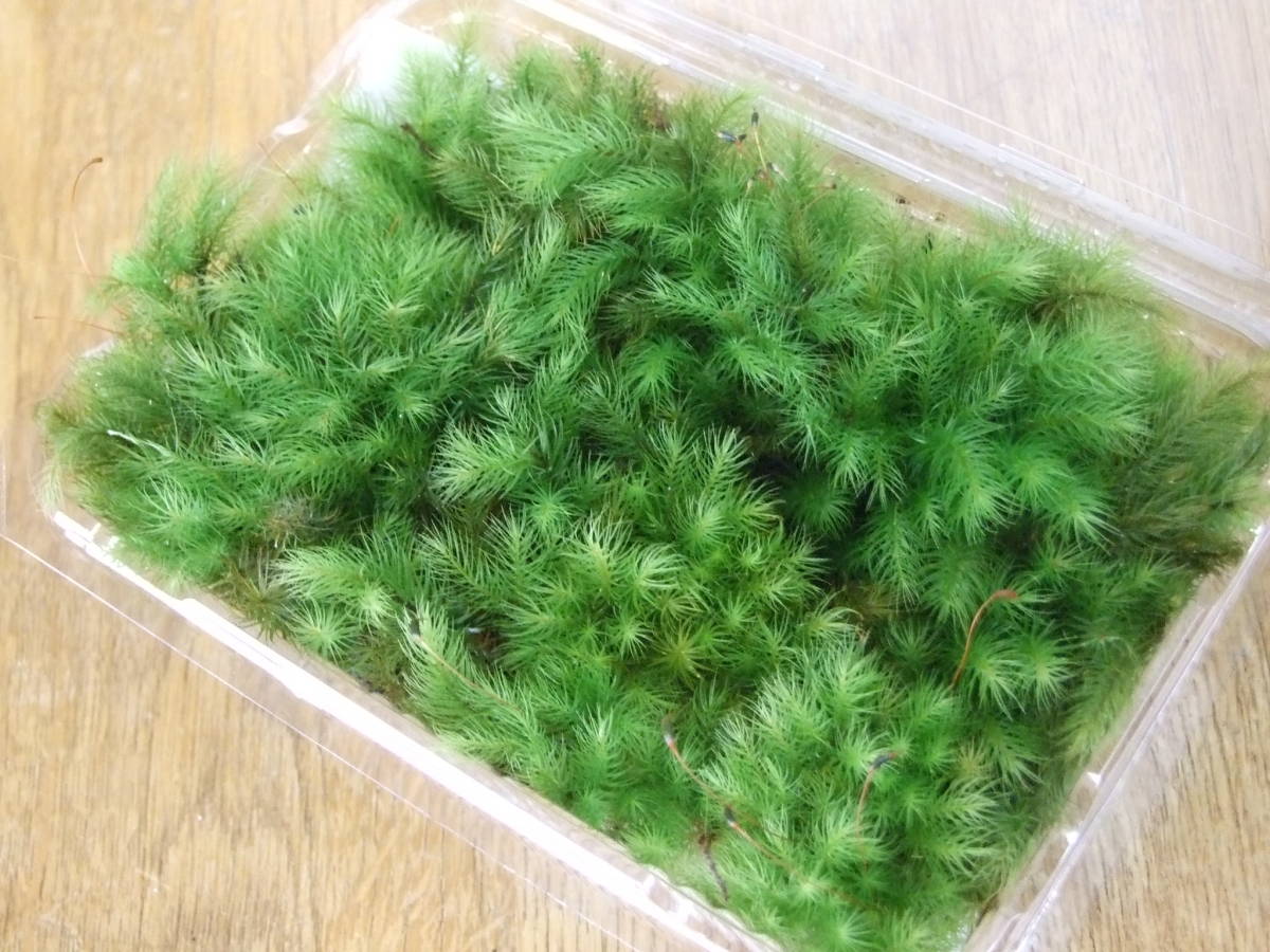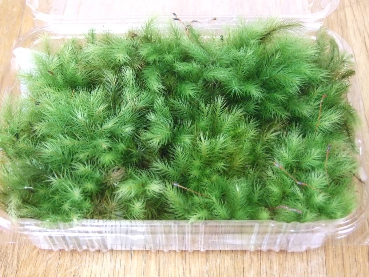 こちらは、山より採取した天然のヒノキゴケ をLサイズ(22.5cm×14cm×6.5cm) に詰めました。