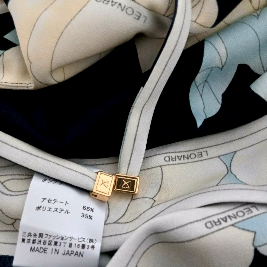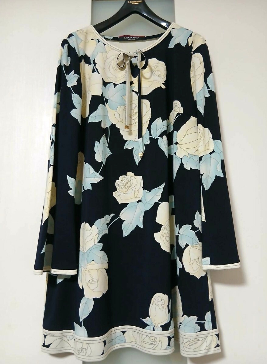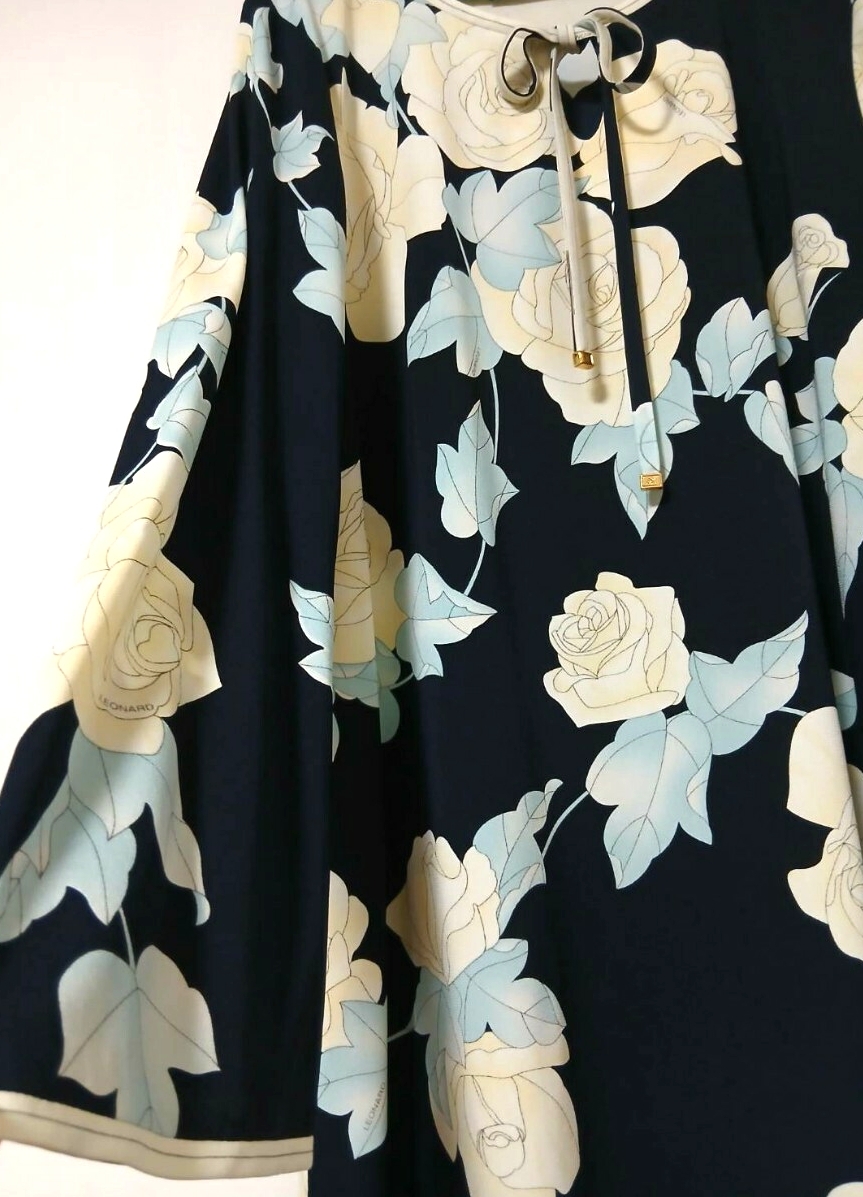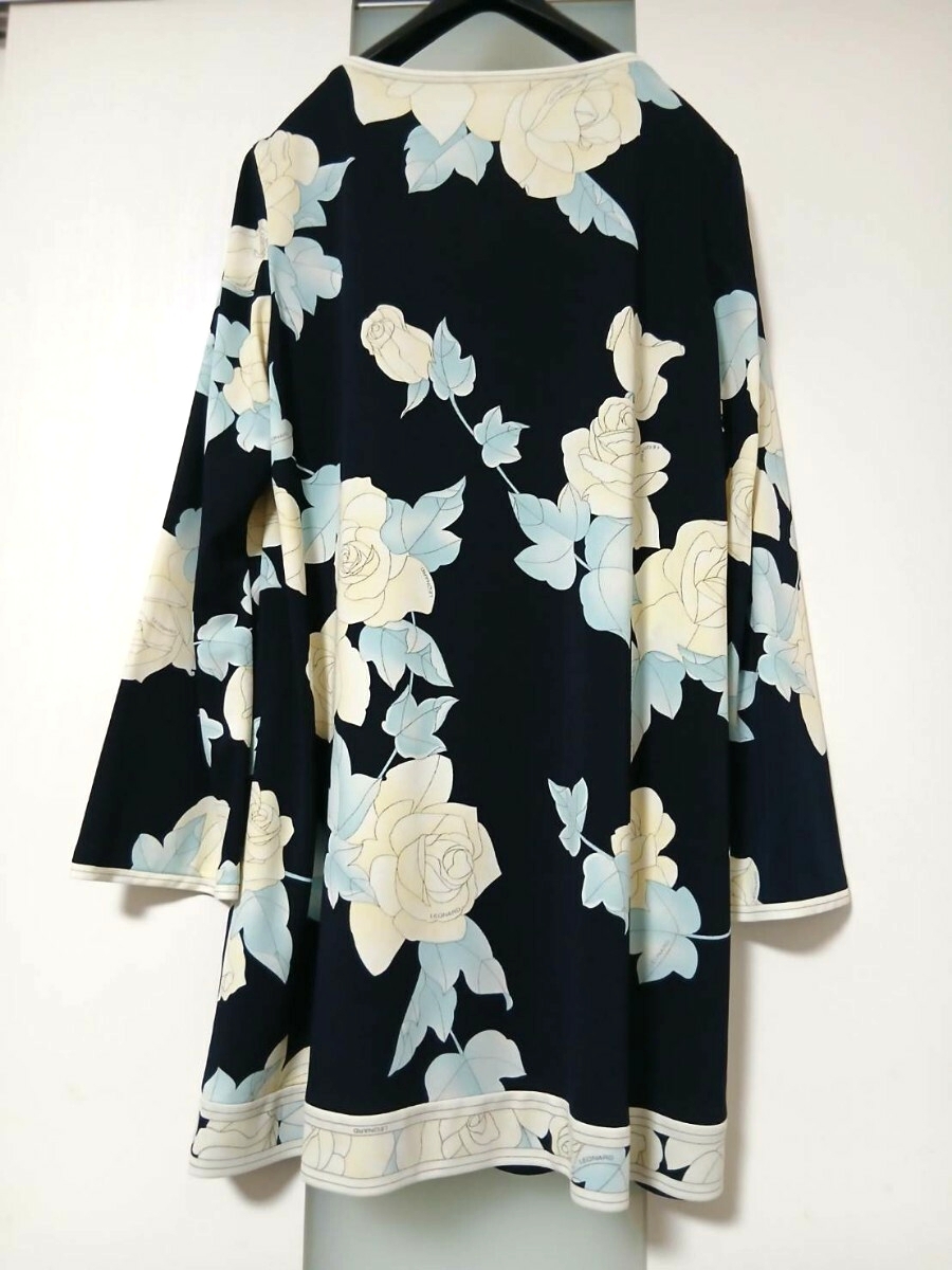 紺地に優しいクリームイエローのお花柄が上品で清楚な印象のチュニックです。