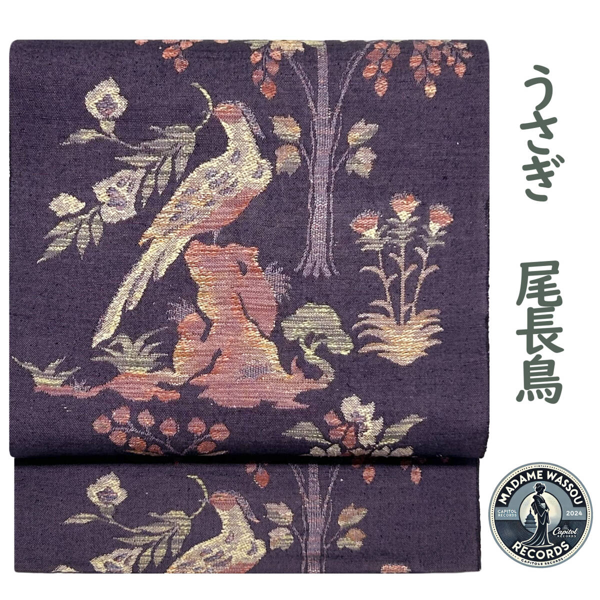 名古屋帯 八寸 正絹 紬 うさぎ 尾長鳥 六通柄 淡い紫色 綺麗な柄 カジュアル 仕立て上がり MWR-No.351 28102025 マダム 和装