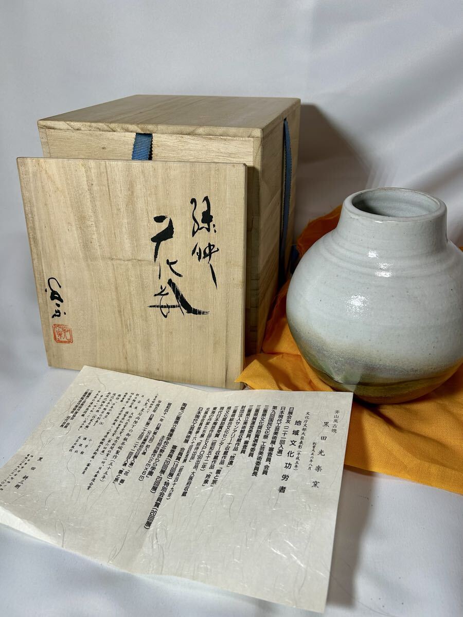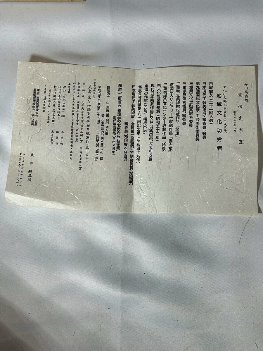黒田耕三朗(黒田光楽窯)の作品で、共箱・黄布・栞が揃う完備品。