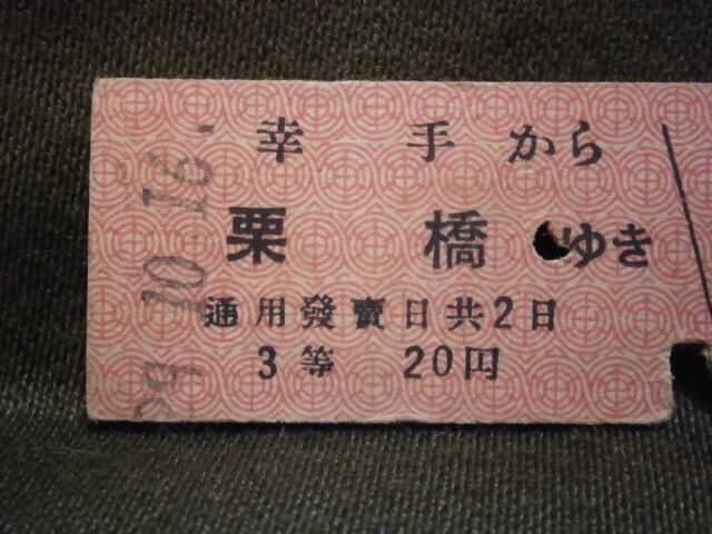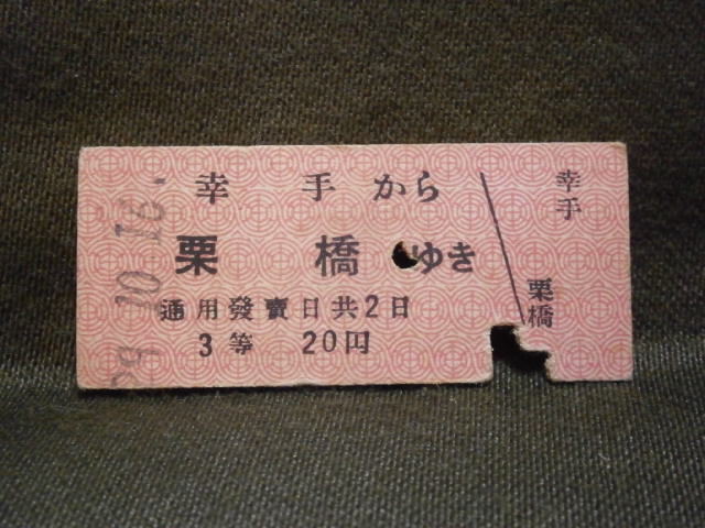東武鉄道 3等 幸手から栗橋ゆき乗車券