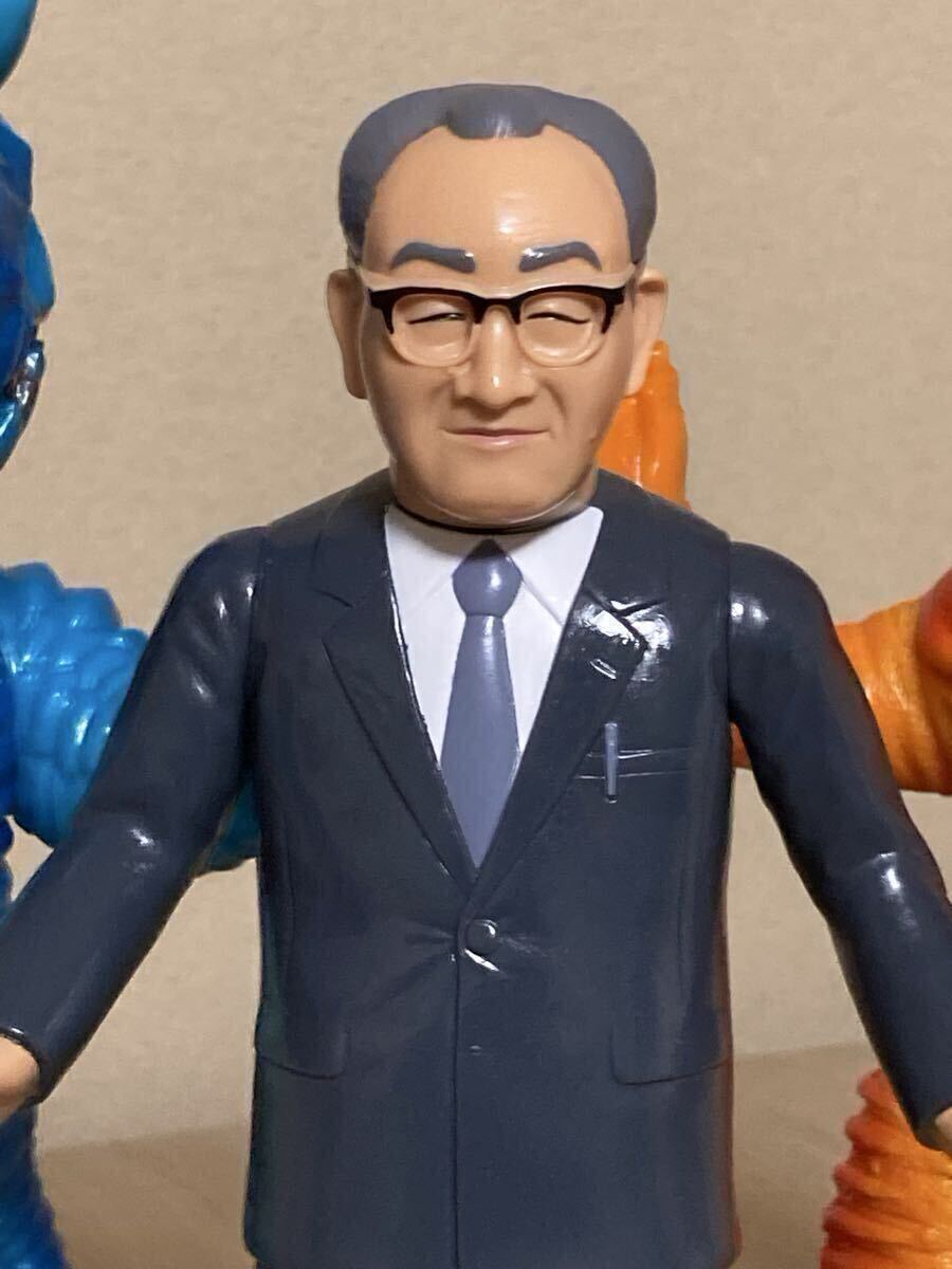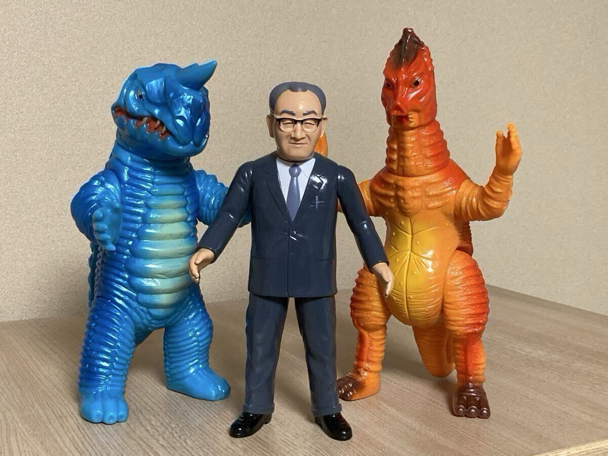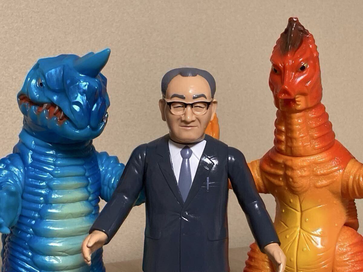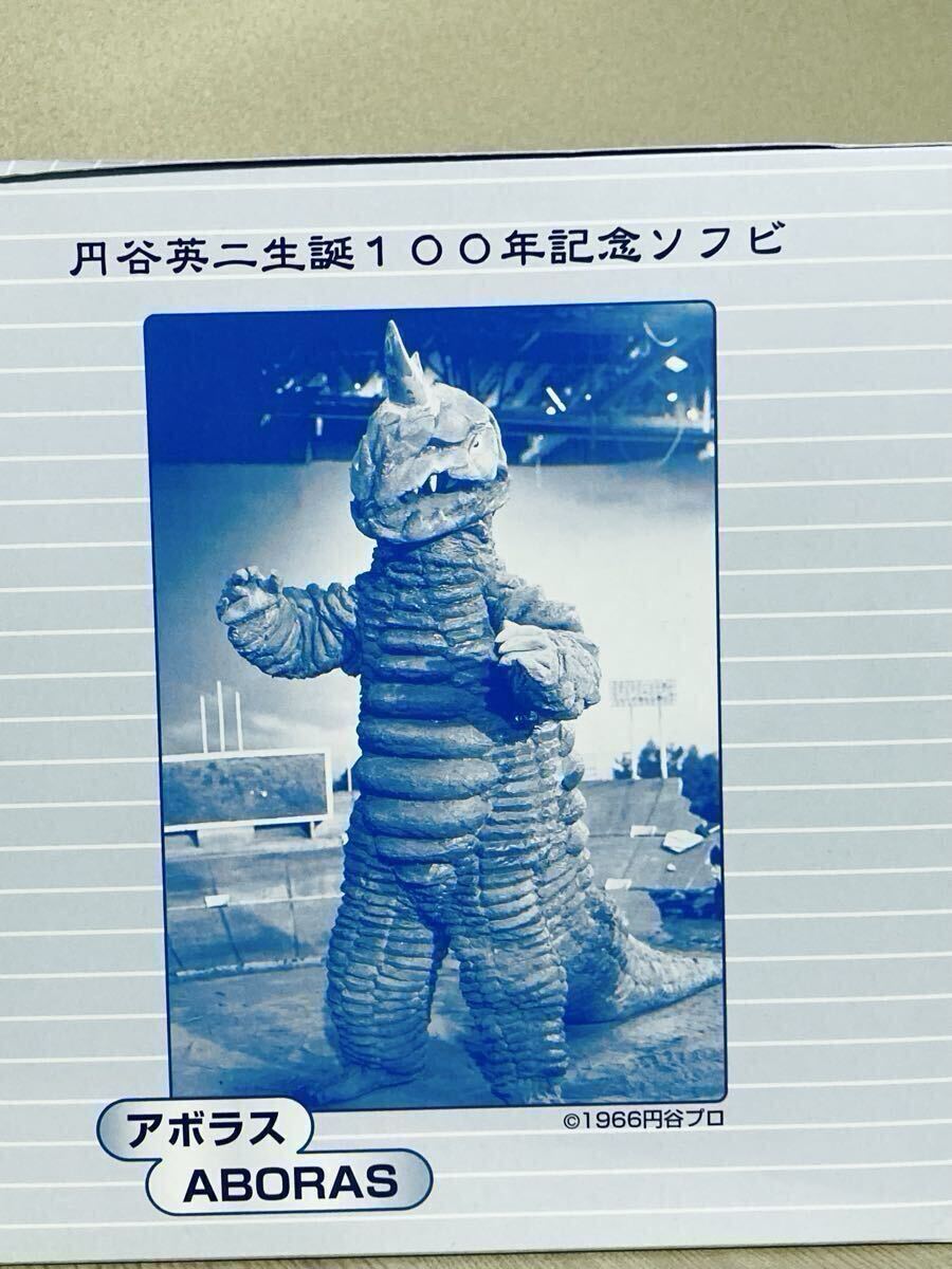 出品の商品は2001年に福島県須賀川市で開催された「生誕100年 円谷英二展」にて発売されたソフビ3体セット(円谷英二・アボラス・バニラ)になります。