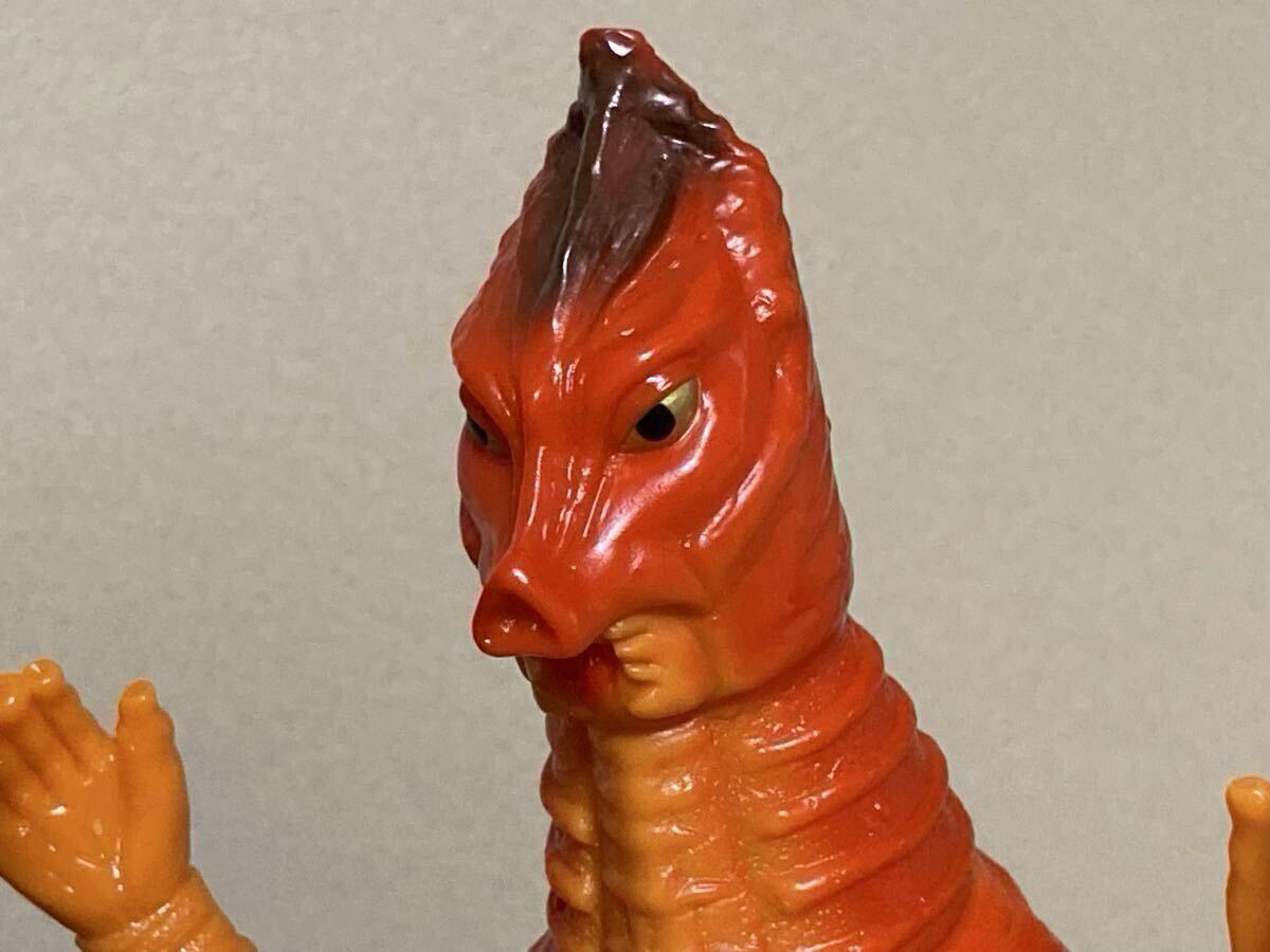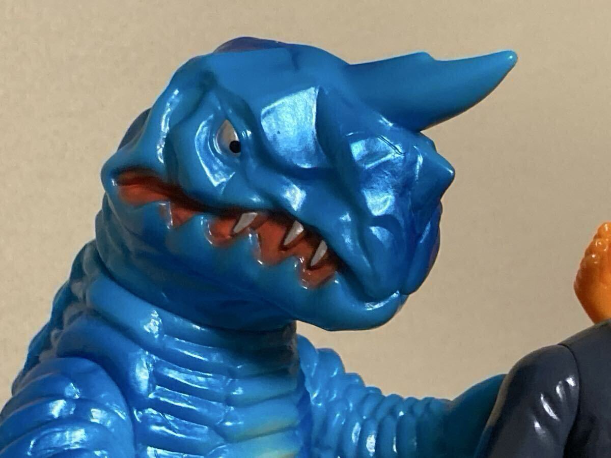 暗所に保管していたため、当方の見る限りソフビにホコリの付着や色ヤケは見られませんが、経年からくるベタつきがありますことをご承知願います。