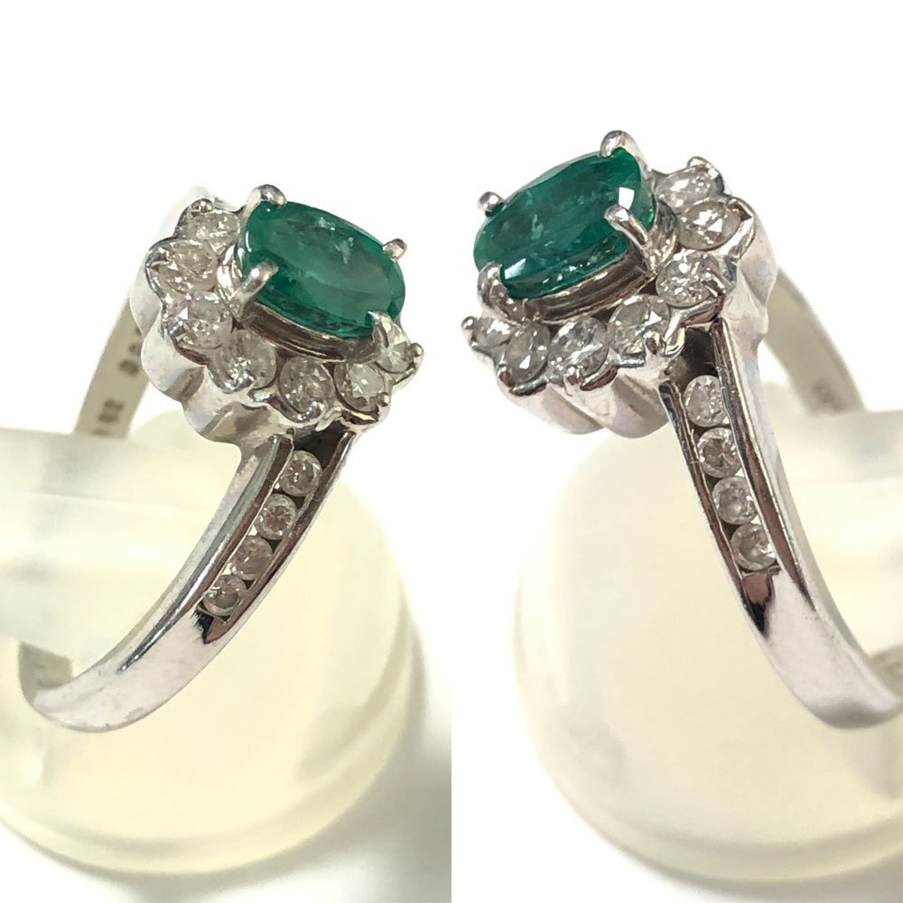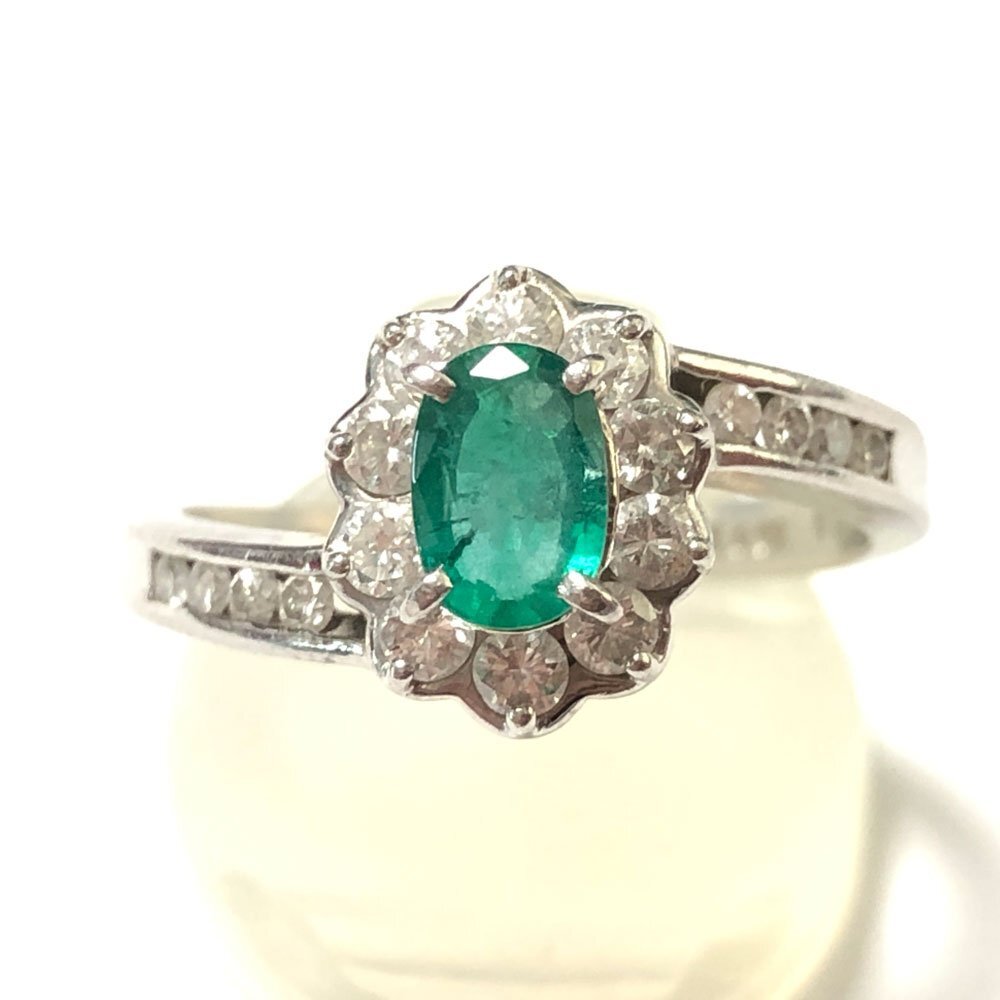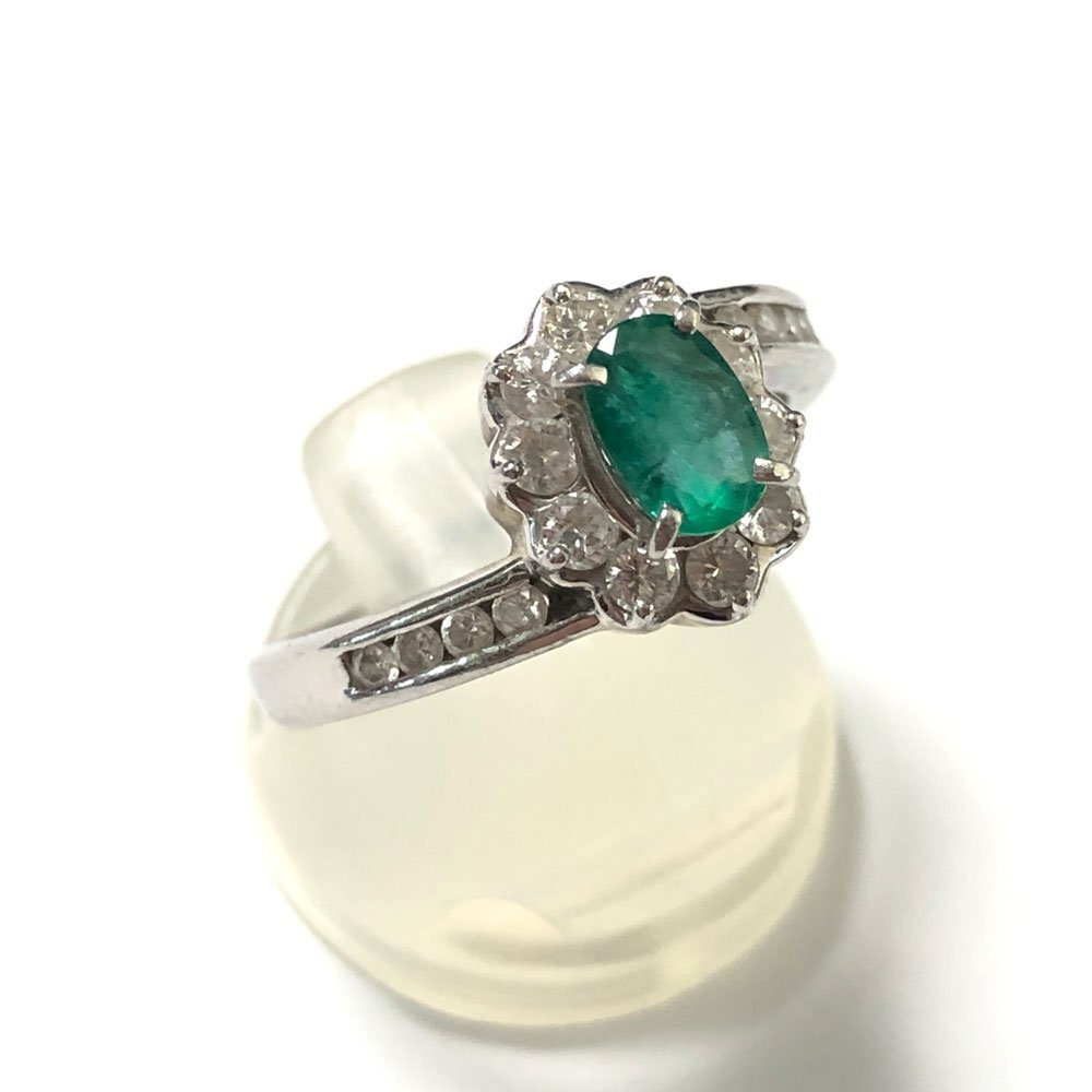 Pt900 エメラルド 0.62ct ダイヤモンド 0.55ct プラチナカラー リング 指輪 #15