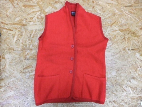 Rusk&Finch レディース ニュージーランド製 ウール100% パイピング フリースベスト 赤 サイズL アメカジ オールド古着 です。