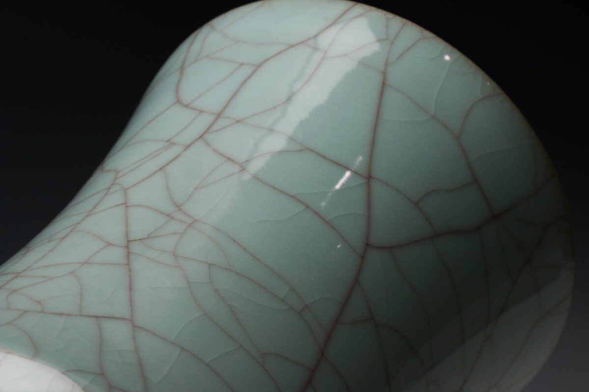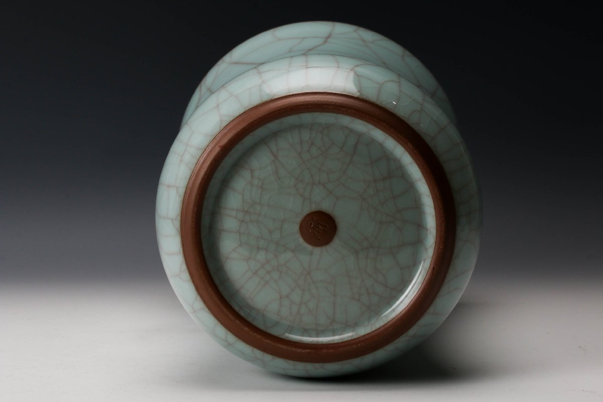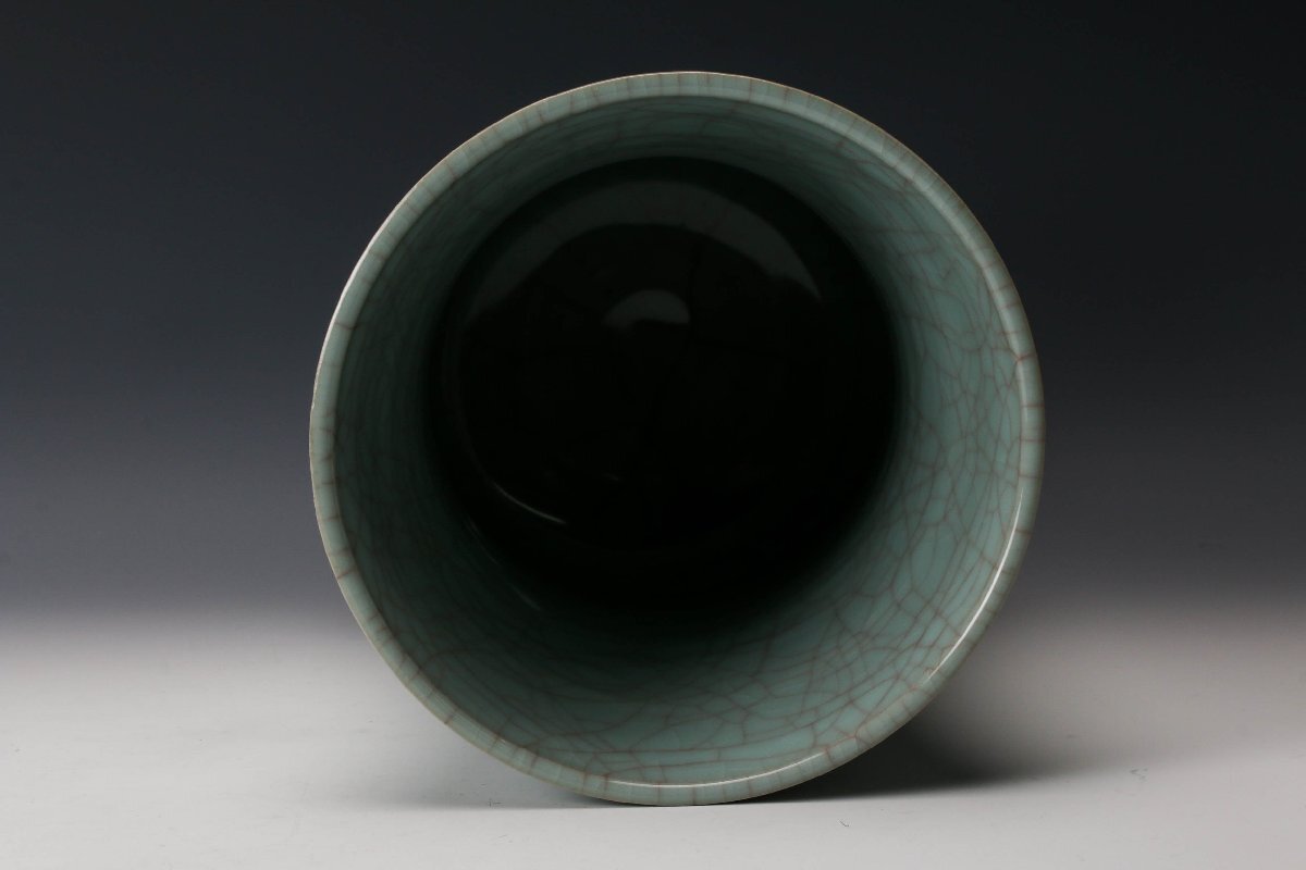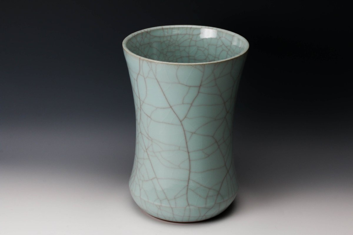 【佳香】浦口雅行 高さ25cm 青瓷花器 共箱 共布 栞 本物保証