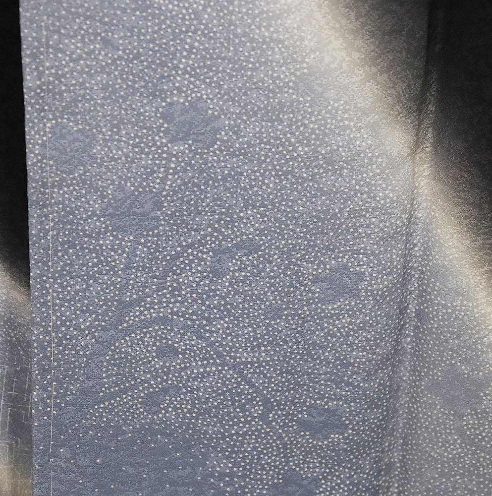 | 色・柄 | 訪問着 袷 丹後縮緬地 黒色(烏羽色)・青グレー(藤鼠色)・暈し地 地割れ模様地 幾何模様・梅・麻の葉 (写真では上手く色が出ない場合があります。ご了承下さい) |