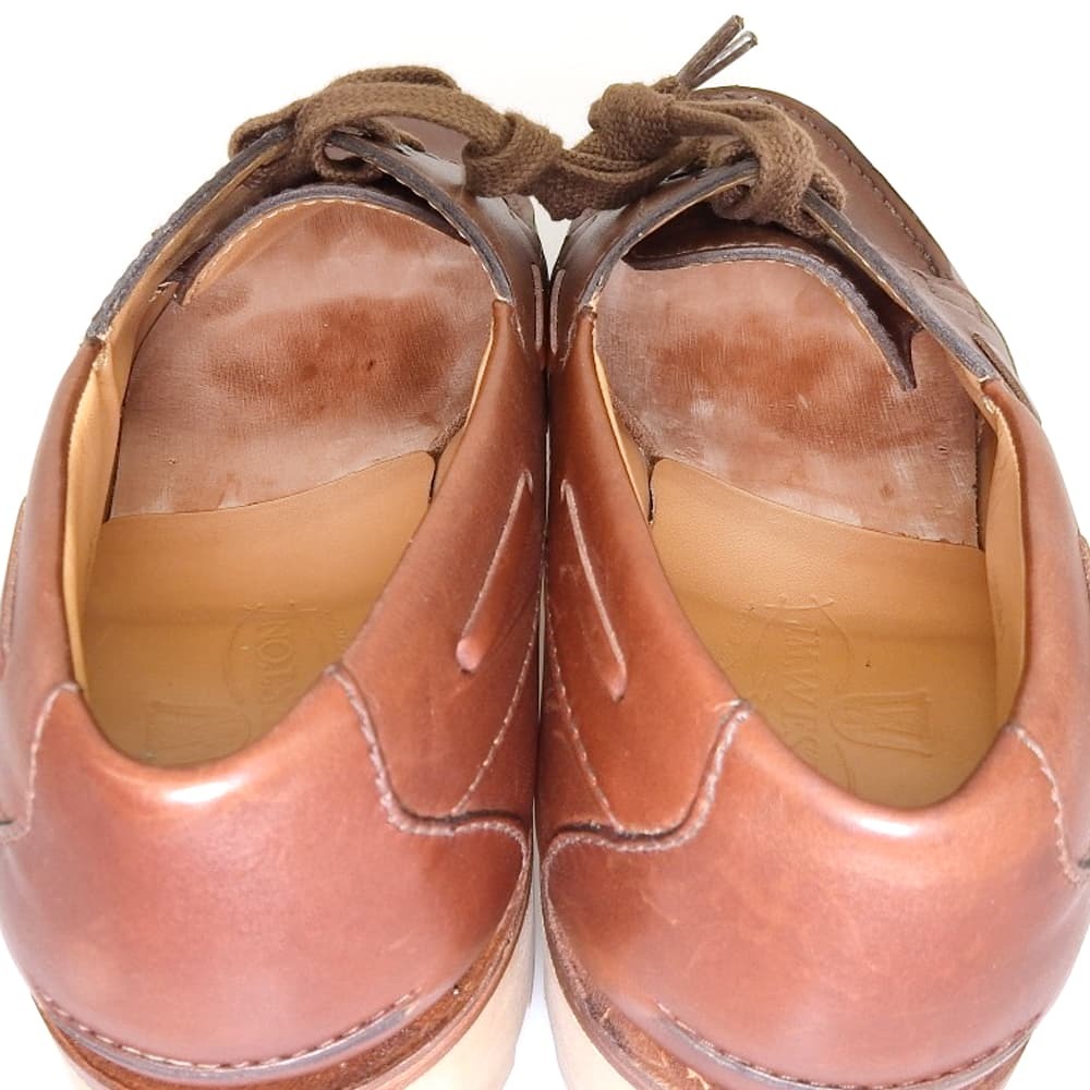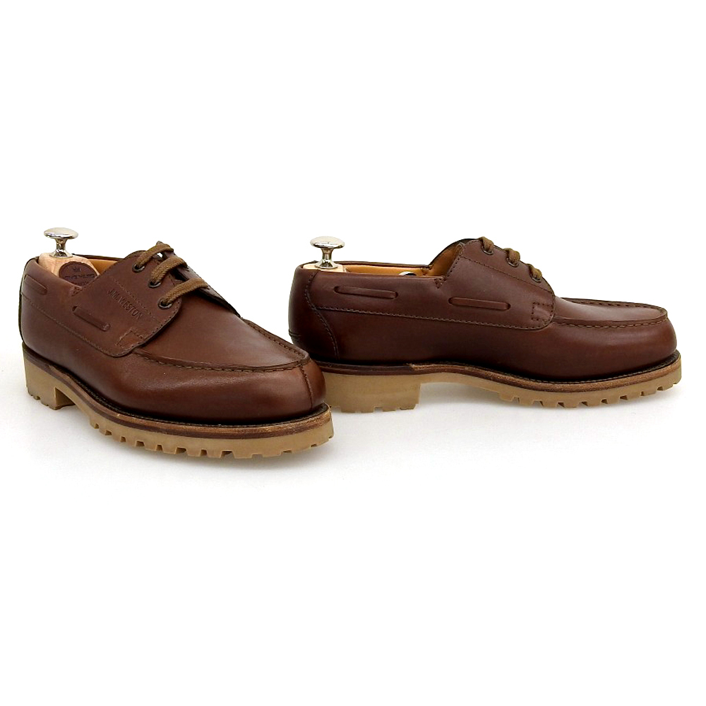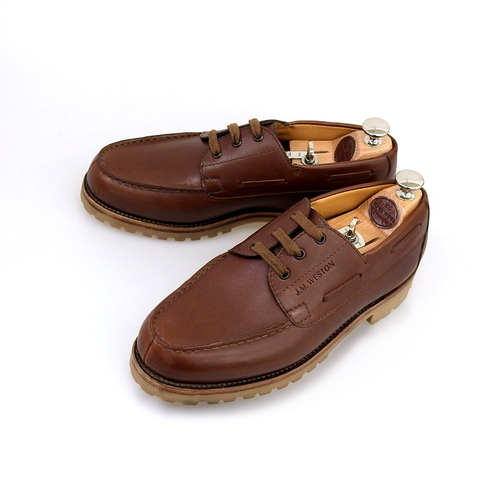 | 【 商品名 】 【11141SM】使用僅かの超美品 ジェイエムウエストン 690 YACHT(ヨット) デッキシューズ オーク ソフトカーフ サイズ5.5D J.M. Weston 上品さと外羽根Uチップならではのスポーティーさが調和した、JMウエストンのヨット。堅牢なラバーソールを備えた特徴的なデザインながら、野暮ったさを感じさせない佇まいはさすがの一言です。こちらは使用数回のみの極美品となっております。 ・メーカー:ジェイエムウエストンJ.M. Weston ・表記サイズ:5.5D 表記サイズに関するページはこちらです。 ・アウトソール全長:27.5cm 最大幅:10cm ・アッパー:ソフトカーフ ・カラー:オーク(ブラウン系色) ・付属品:無し ・程度【SAランク】 ※新品ではありません。USED品であることをご理解の上、入札をご検討下さい。