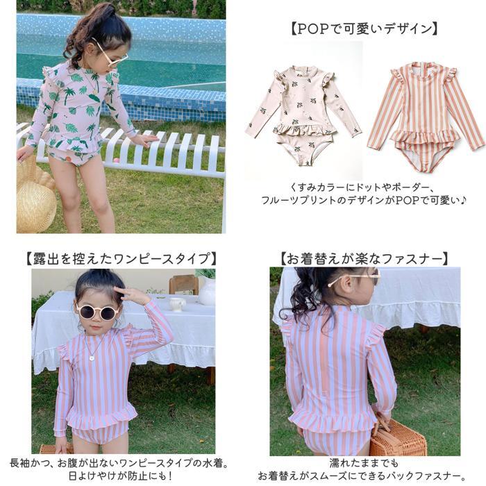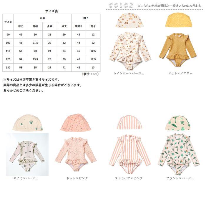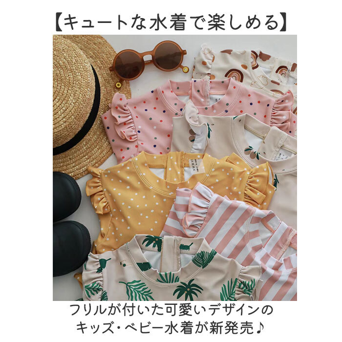 | 商品説明 | ・・【キュートな水着で楽しめる】 ・フリルが付いた可愛いデザインのキッズ・ベビー水着が新発売♪ ・【POPで可愛いデザイン】 ・くすみカラーにドットやボーダー、フルーツプリントのデザインがPOPで可愛い♪ ・【露出を控えたワンピースタイプ】 ・長袖かつ、お腹が出ないワンピースタイプの水着。日よけやけが防止にも! ・【お着替えが楽なファスナー】 ・濡れたままでもお着替えがスムーズにできるバックファスナー。 ・【嬉しいUPF50+機能も】 ・気になる紫外線をカットしてくれるUPF50+機能。長時間のプールや海遊びも安心☆ ・【帽子付き】 ・水着と同色同柄の帽子付き。水着コーデがバッチリ決まる! ・【幅広いサイズ展開】 ・姉妹やお友達とお揃いができるサイズ展開♪可愛い水着で水遊びをもっと楽しめる。 |