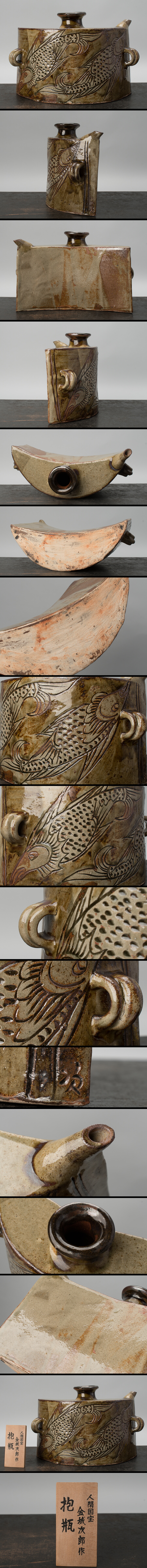 | 金城次郎の魚紋抱瓶。箱無。真作保証。 サイズは、幅約28cm、高さ約18.5cm。 傷・直しありません。 状態、詳細は画像でご確認ください。  |