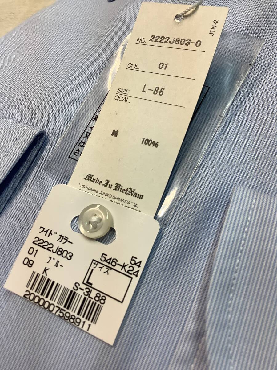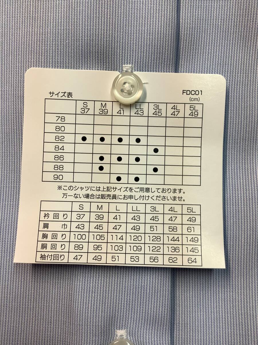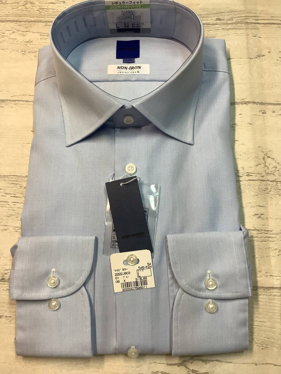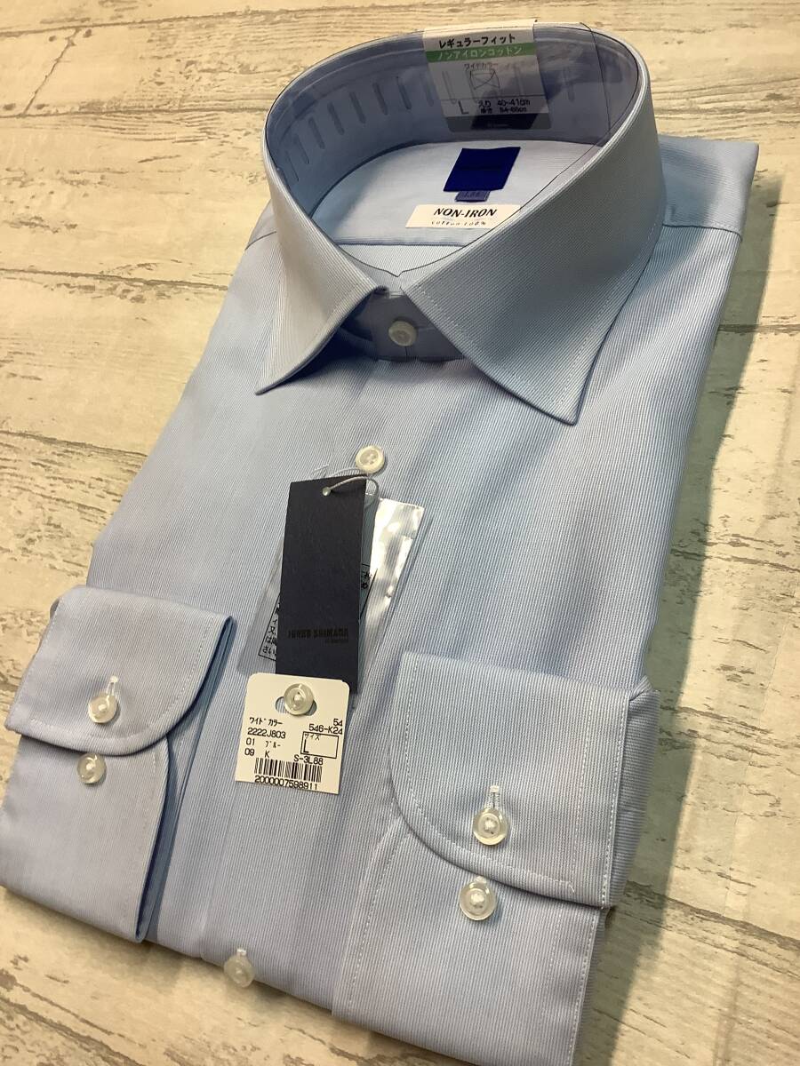 新品未使用 カッターシャツ 41-86 長袖Lサイズ  綿100% ★ワイドカラードレスシャツ ノンアイロンコットン ブルーストライプ