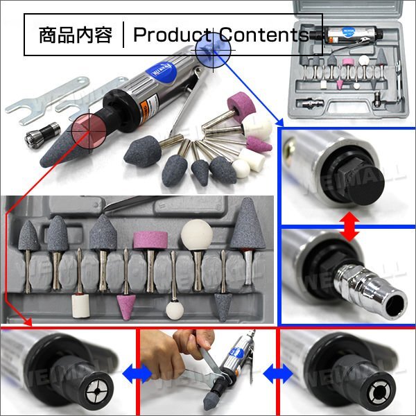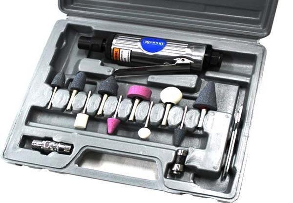 | 10種類の砥石付き!エアーグラインダーキット。金属などの研磨、研削に。各種砥石をつけて、修正・仕上作業に使います。錆落とし サビ取り 研磨機 |