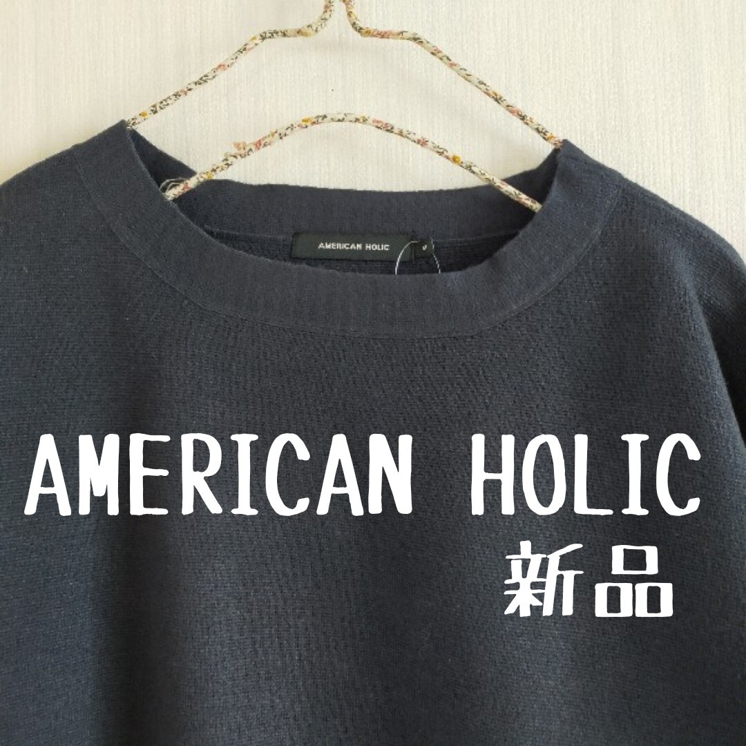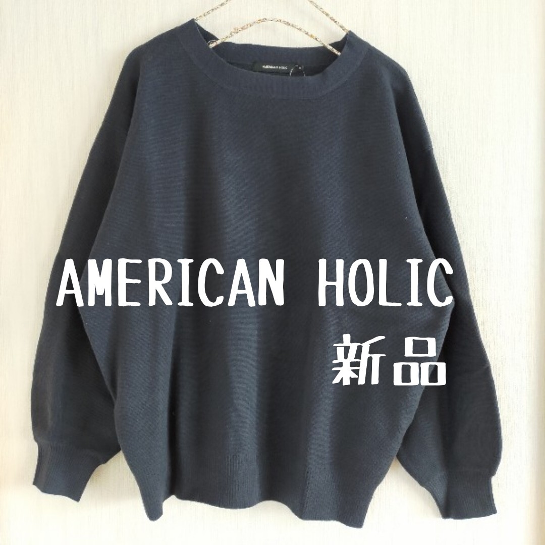 新品 AMERICAN HOLIC(アメリカンホリック)ボートネック ニットプルオーバー ネイビー レディース 春秋