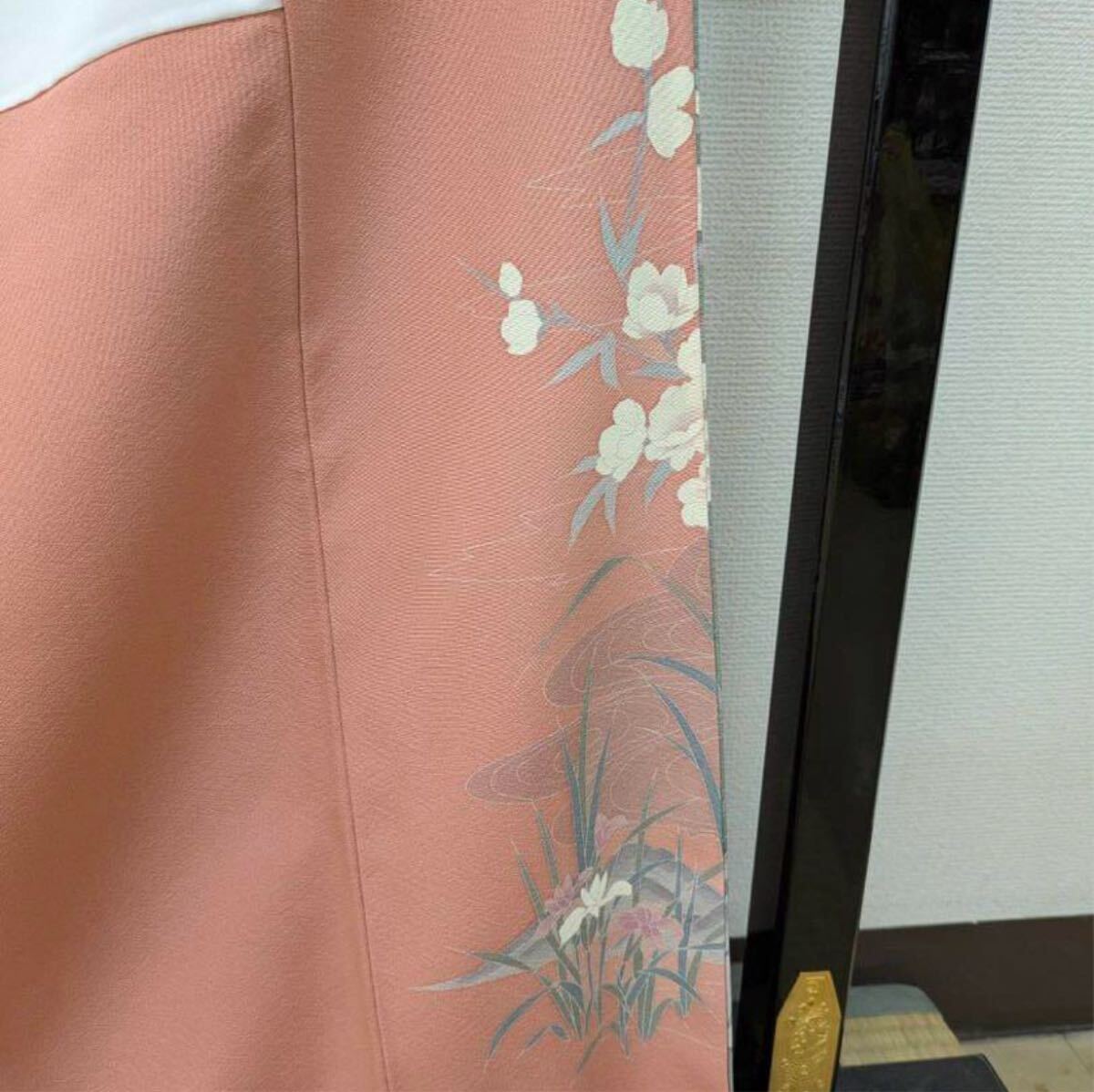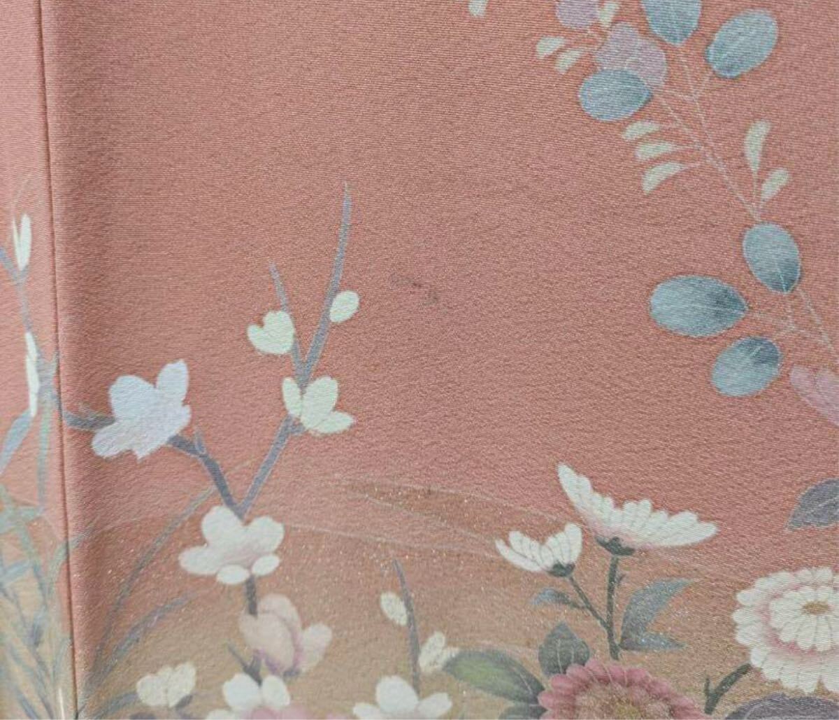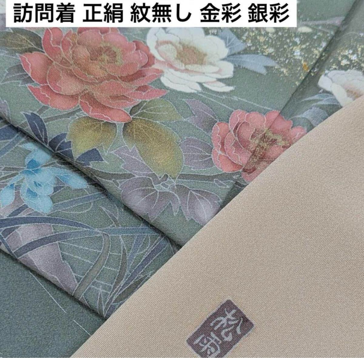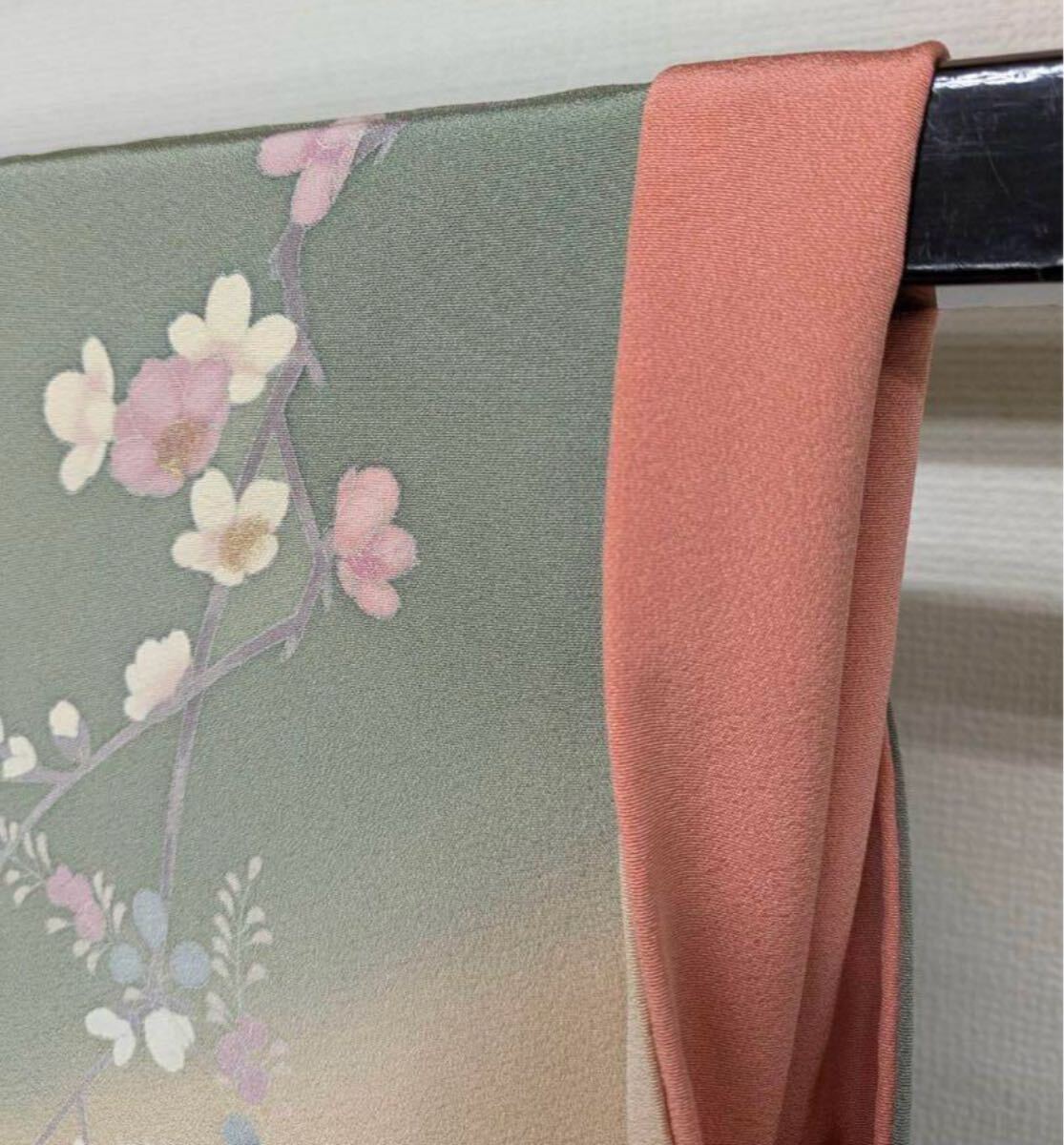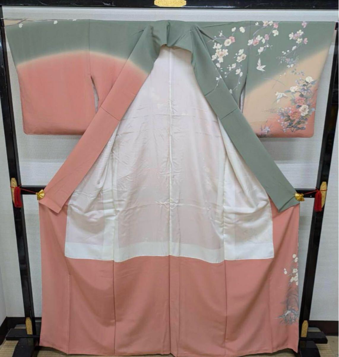 【楓】訪問着 正絹 紋無し 金彩 銀彩 ぼかし染 梅に鶴 広衿 袷 着物 KU-2119