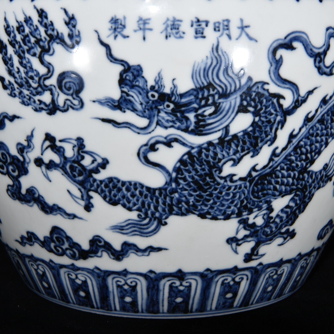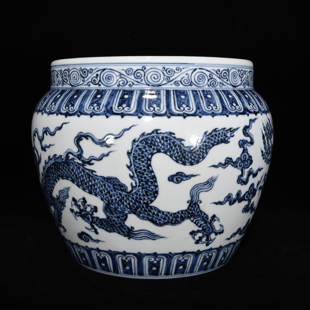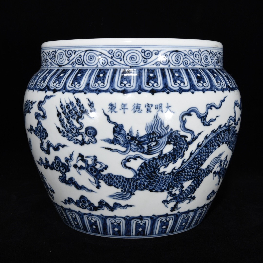 永し 明時代 大明宣德年製 青花龍紋罐 古陶磁器 陶芸 皿 中国陶瓷器 唐瓷 置物擺件 古美術品 古賞物 収集 旧家蔵出 中国唐物 A211
