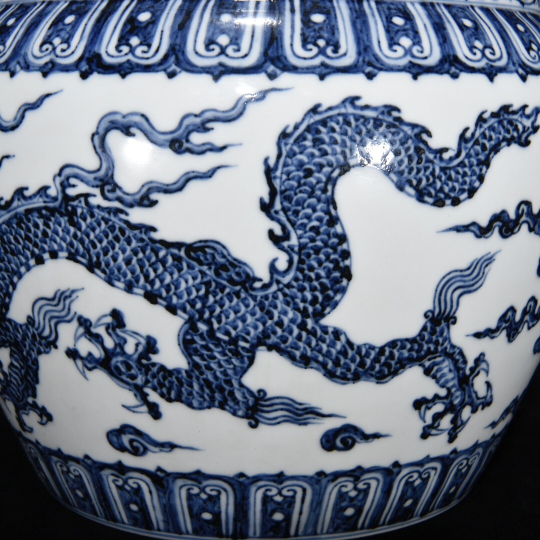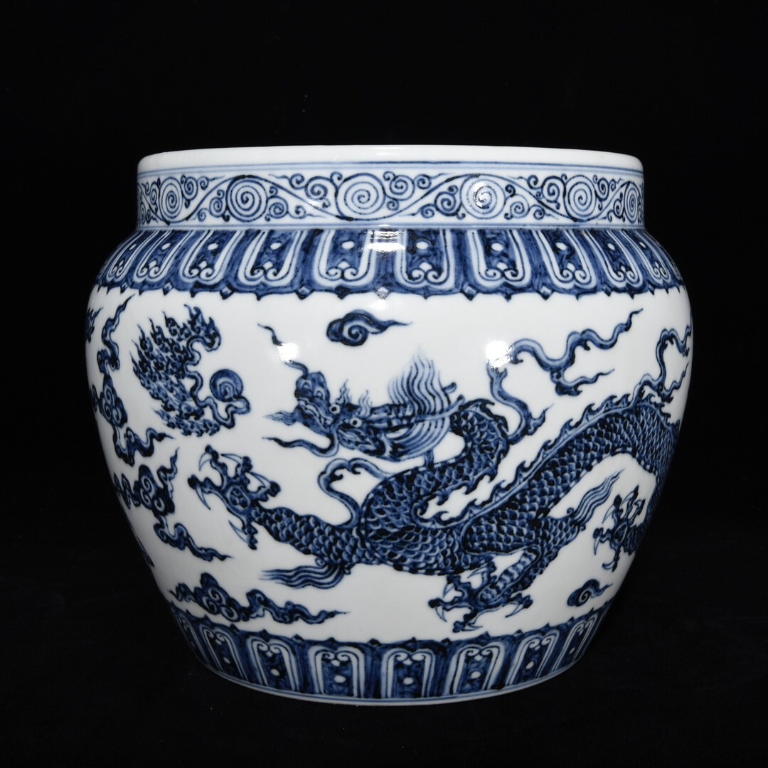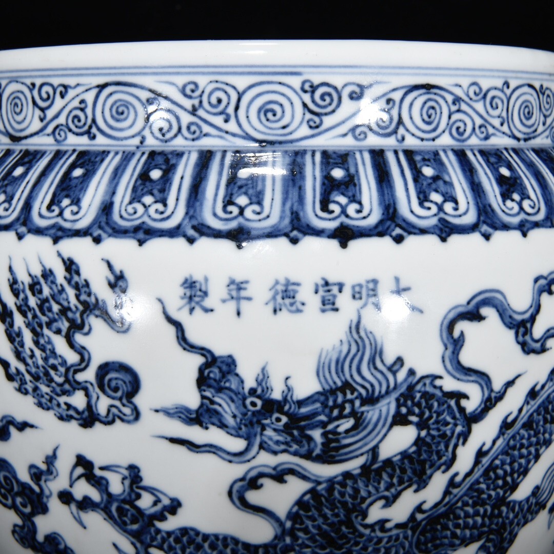 永し 明時代 大明宣德年製 青花龍紋罐 古陶磁器 陶芸 皿 中国陶瓷器 唐瓷 置物擺件 古美術品 古賞物 収集 旧家蔵出 中国唐物 A211