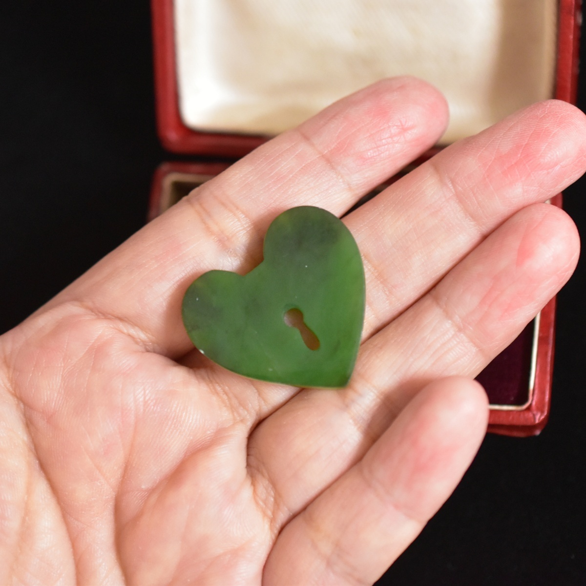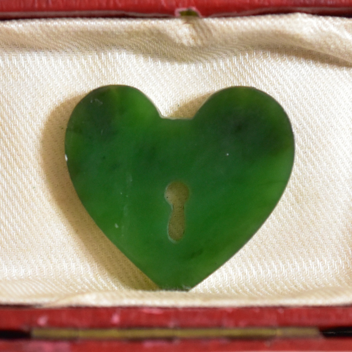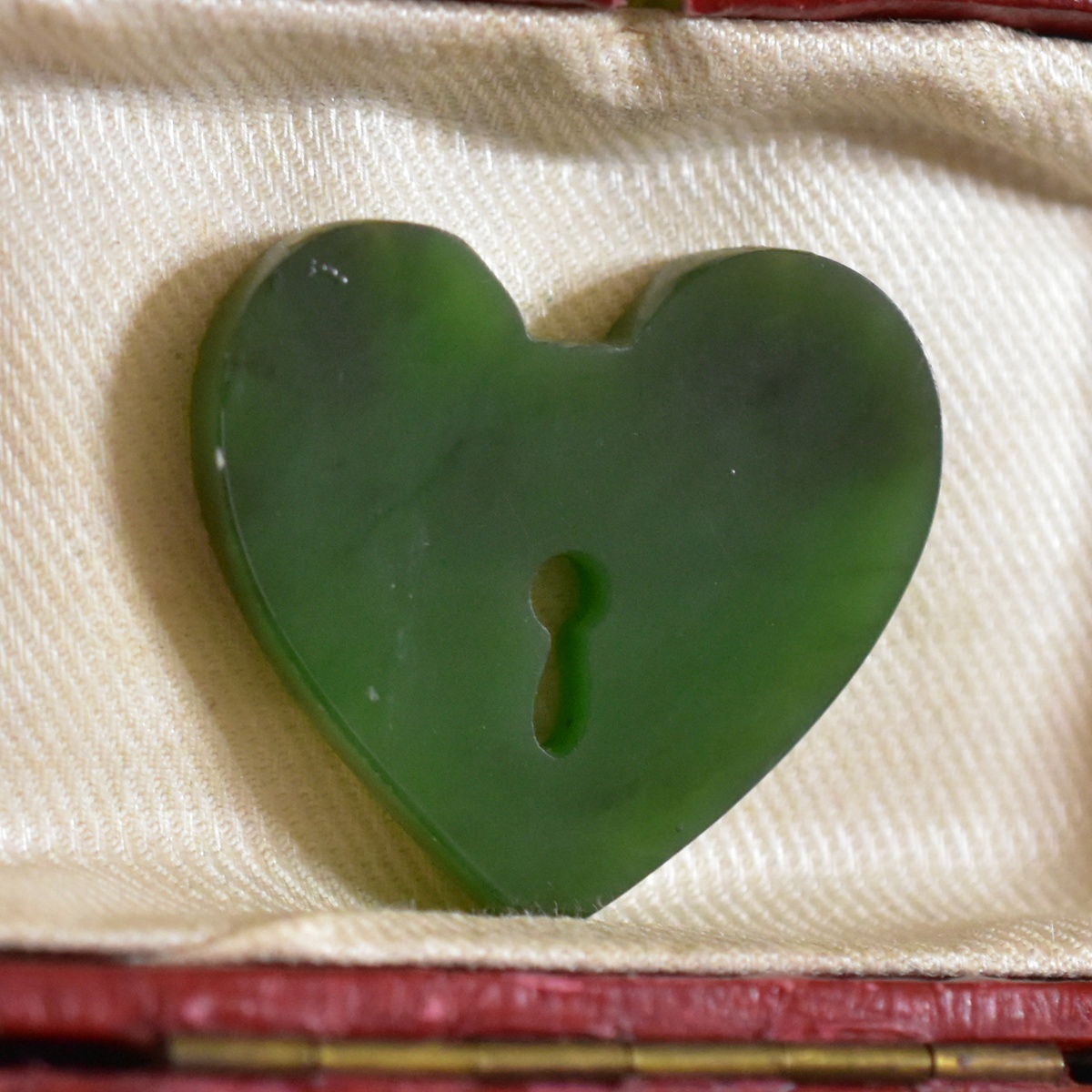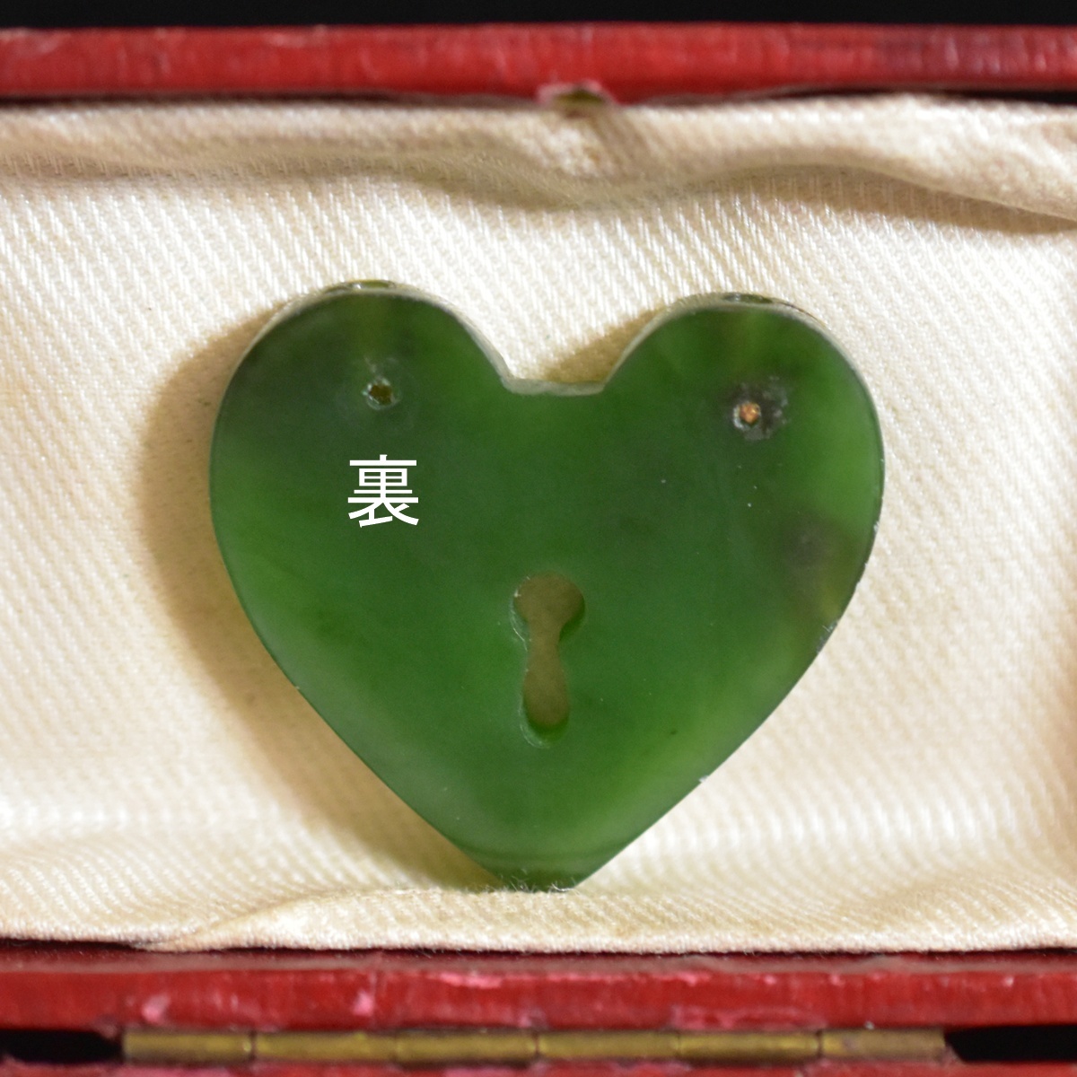 アンティーク/ヴィンテージ 翡翠/ヒスイのハートの南京錠のプレート 本物保証
