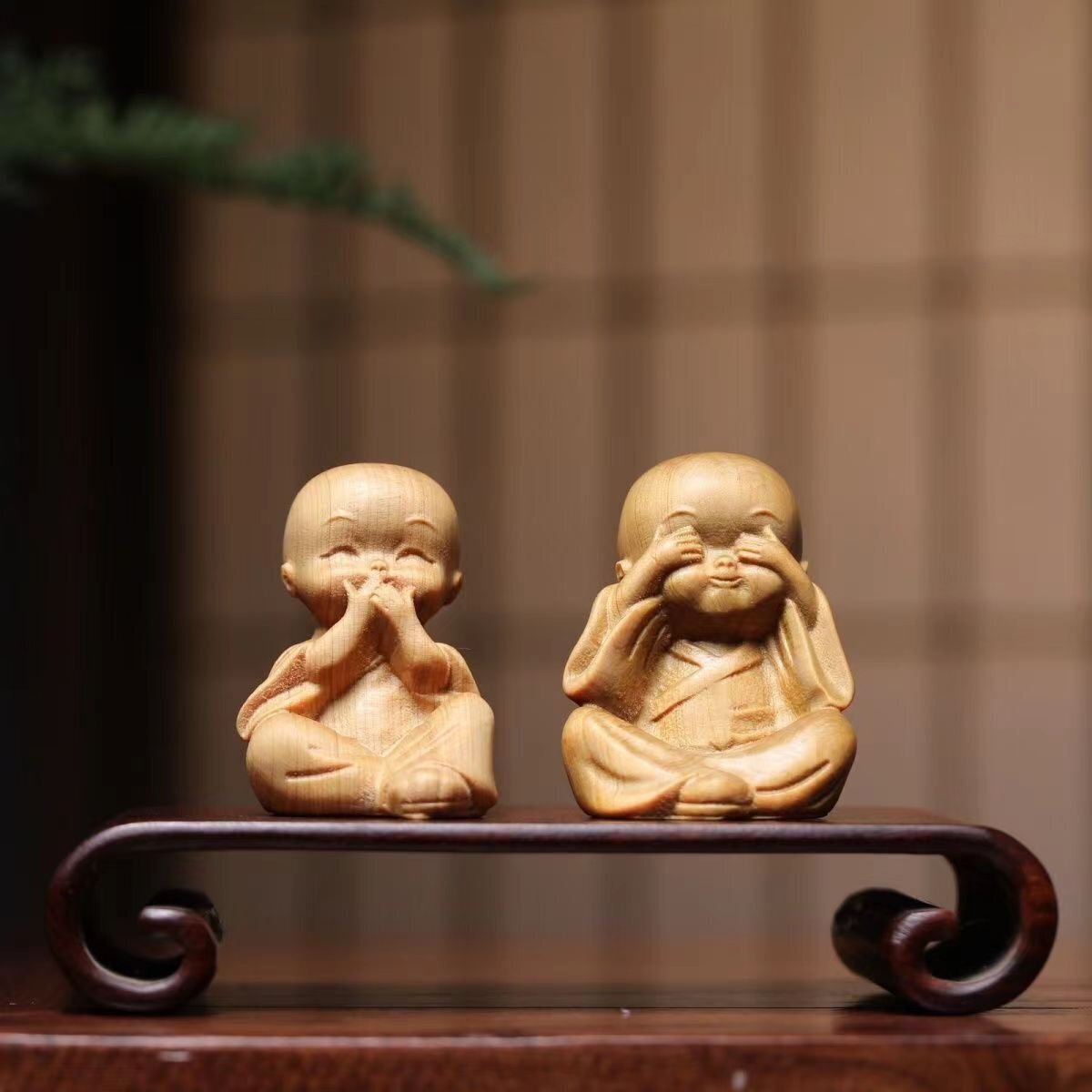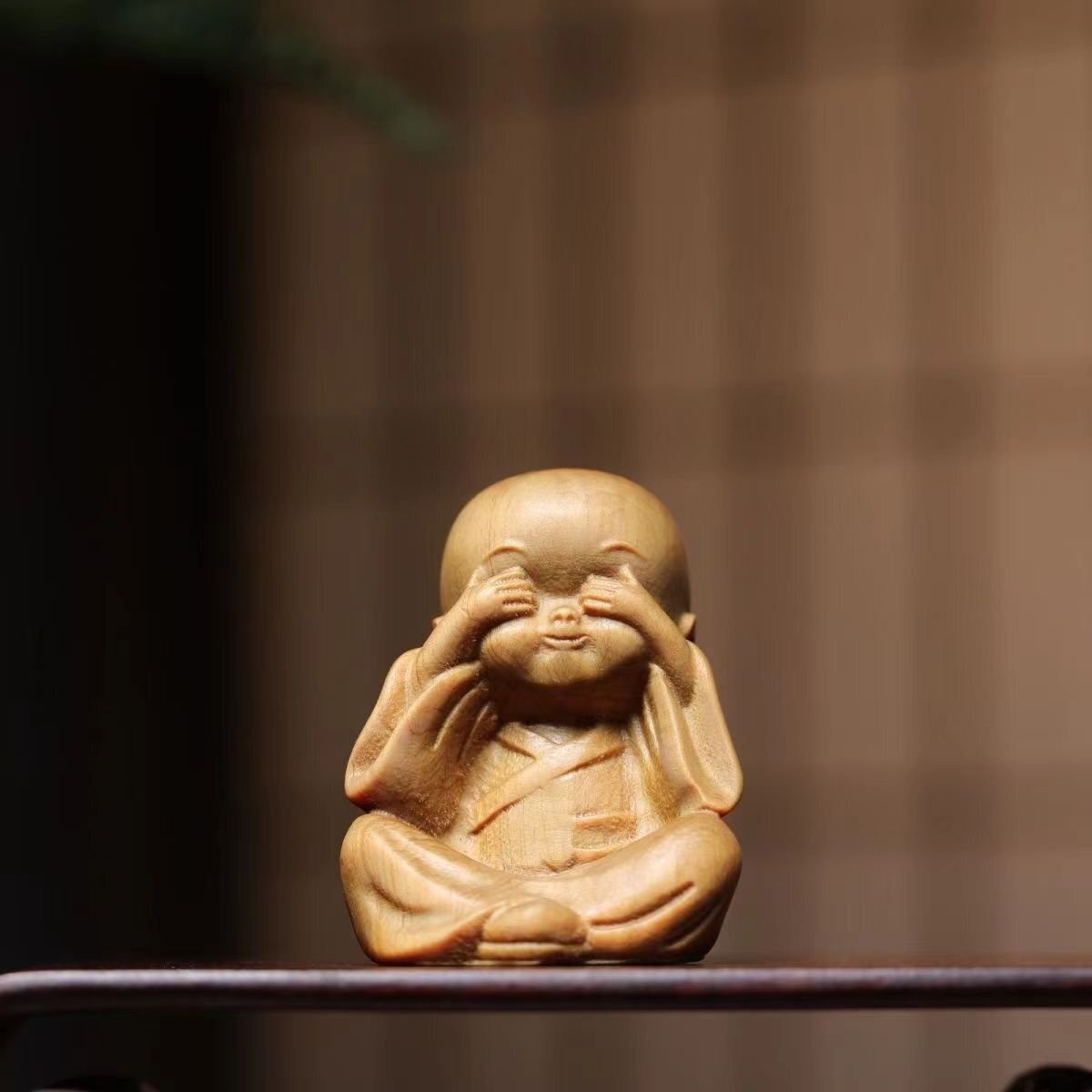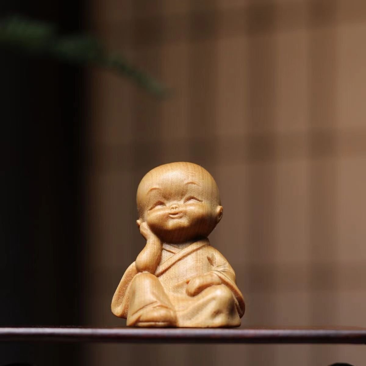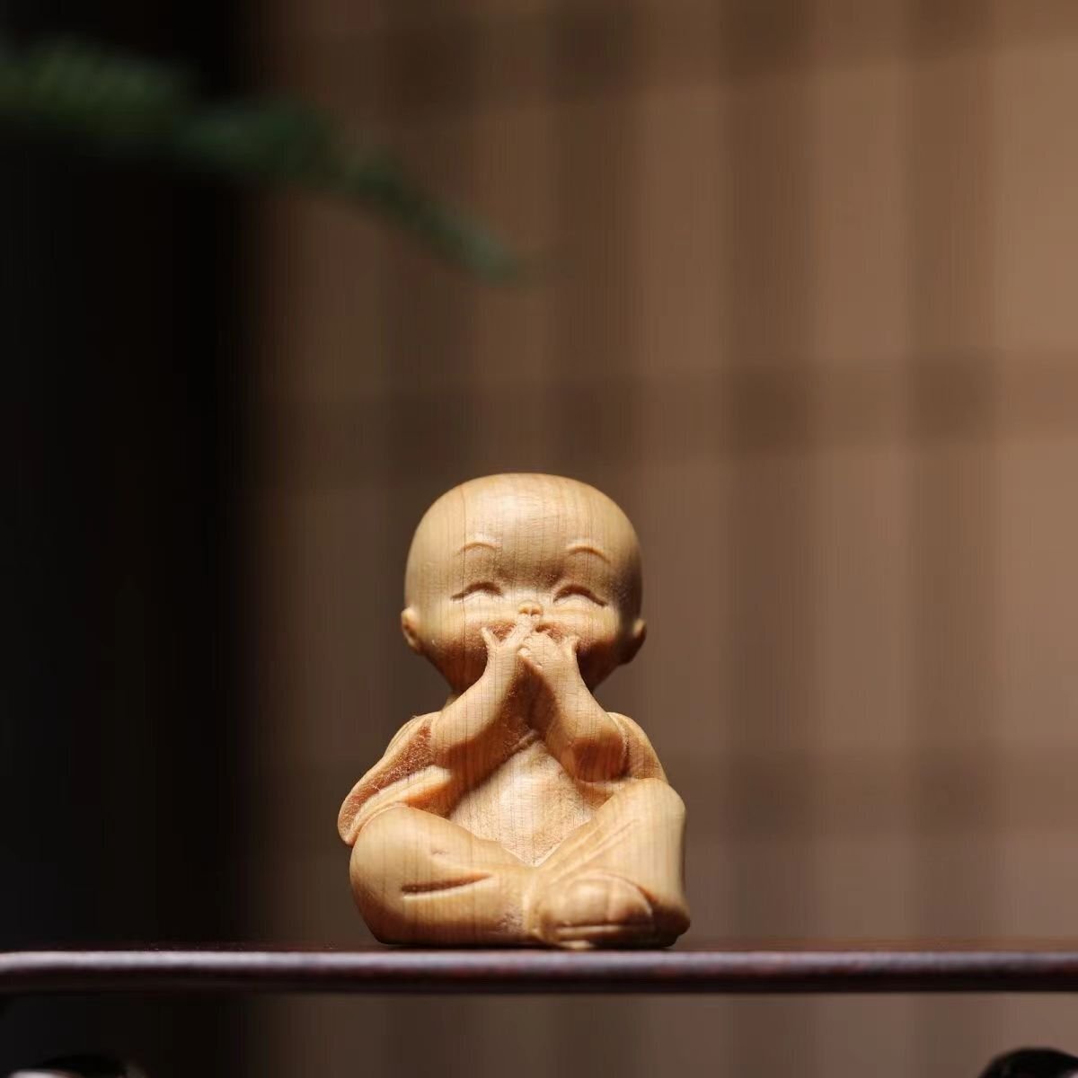 崖柏木彫り立ち小坊主4枚 禅の置物
