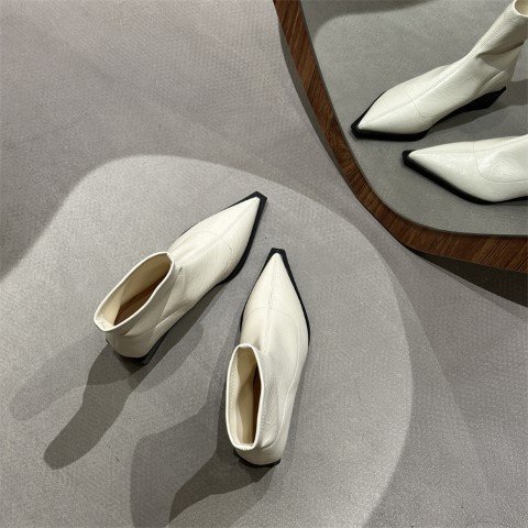 ショートブーツ ポインテッドトゥ きれいめ シンプル カジュアル レディースシューズ 【40】25cm ブラウン