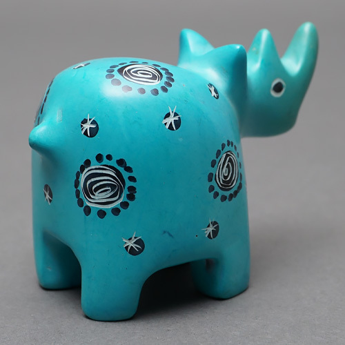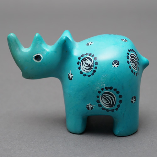 柔らかく加工しやすい石を削って作られた丸りとしたサイの置物です。