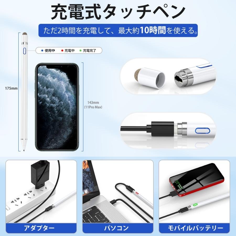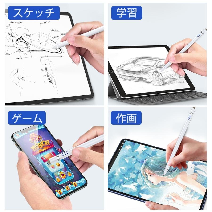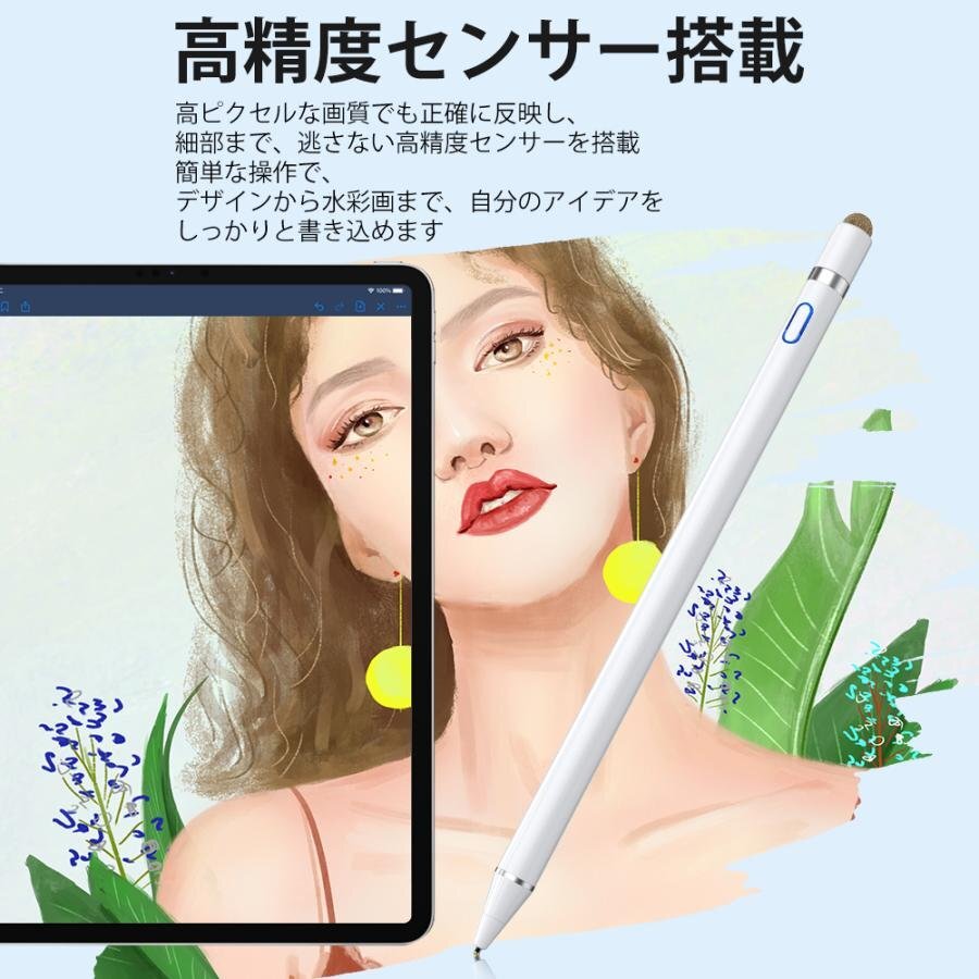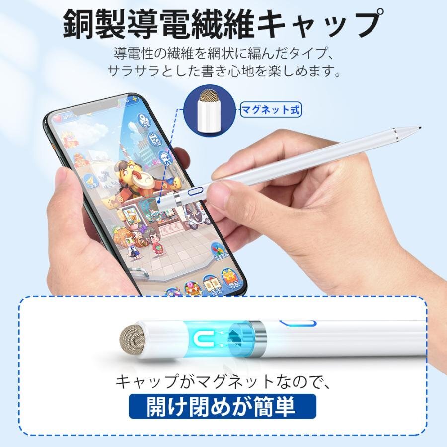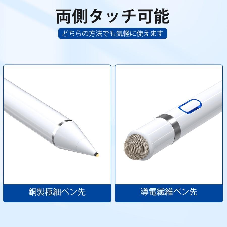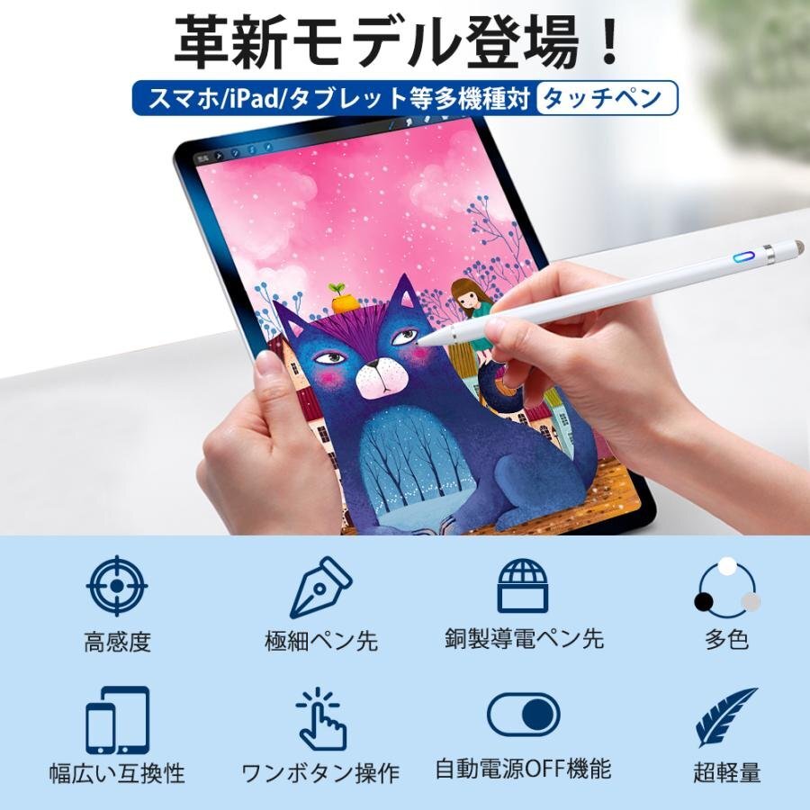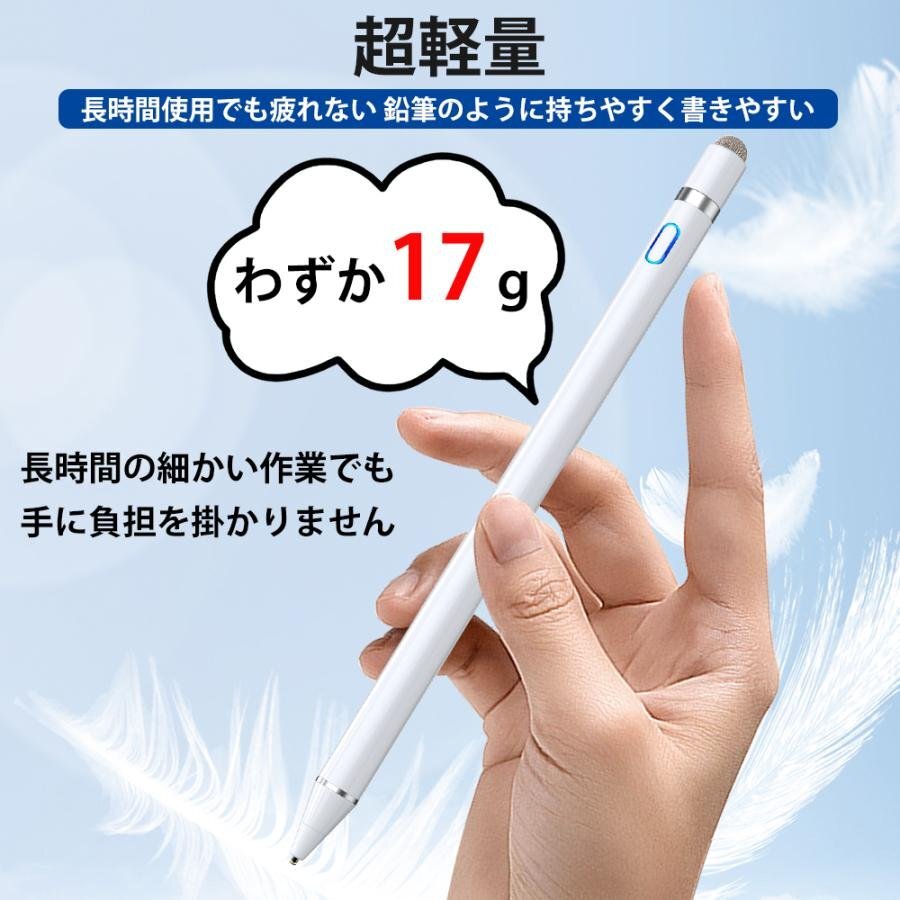 タッチペン ipad iPhone Android 対応 細い スマホ タブレット スタイラスペン 極細 高感度 軽量 遅延なし USB充電 全機種対応 シルバー
