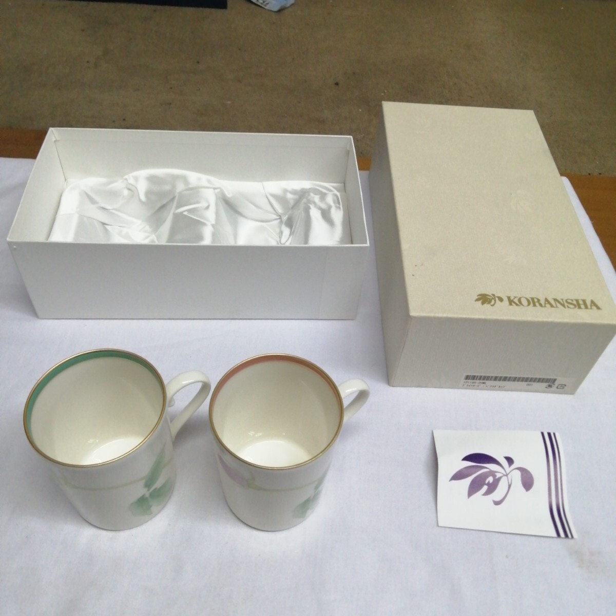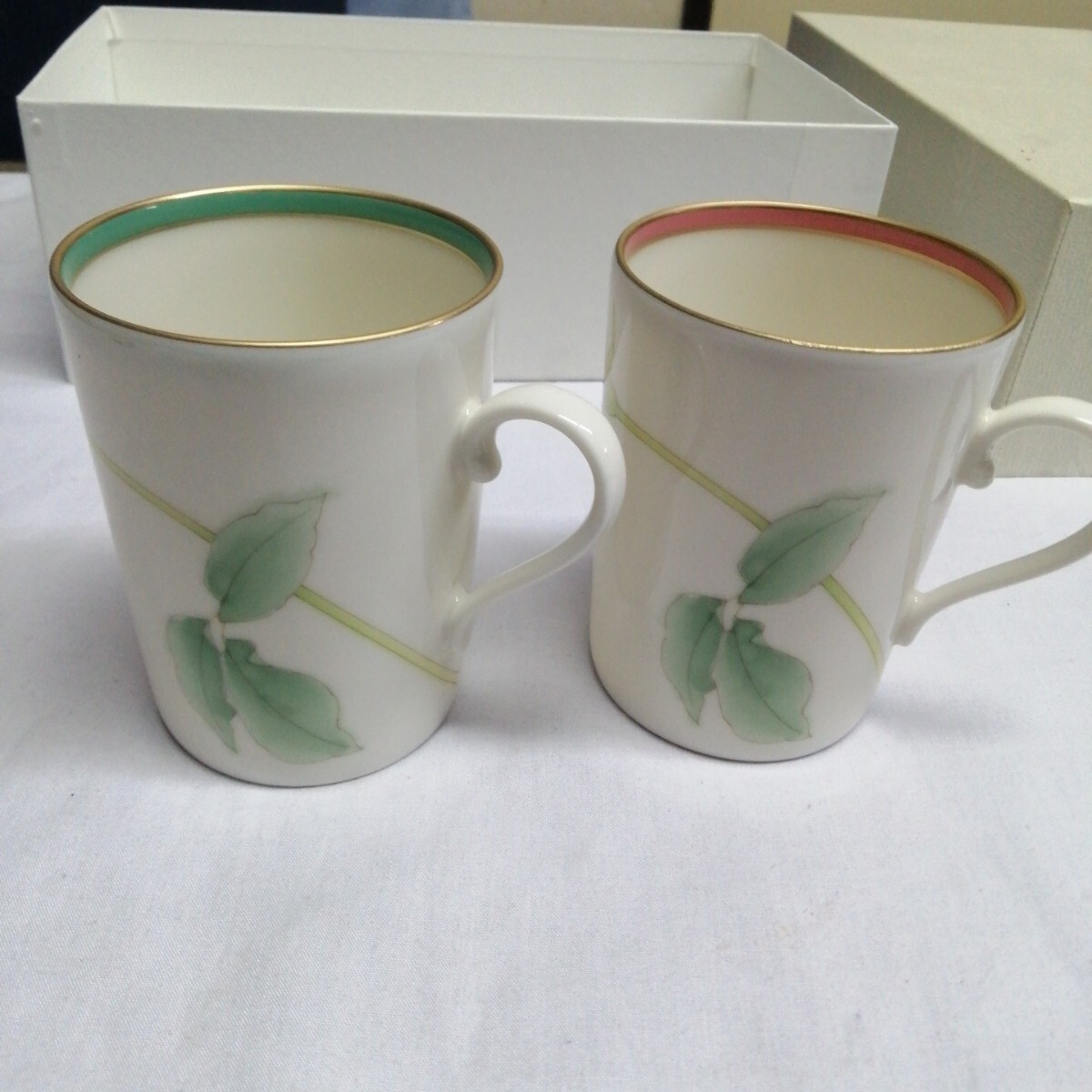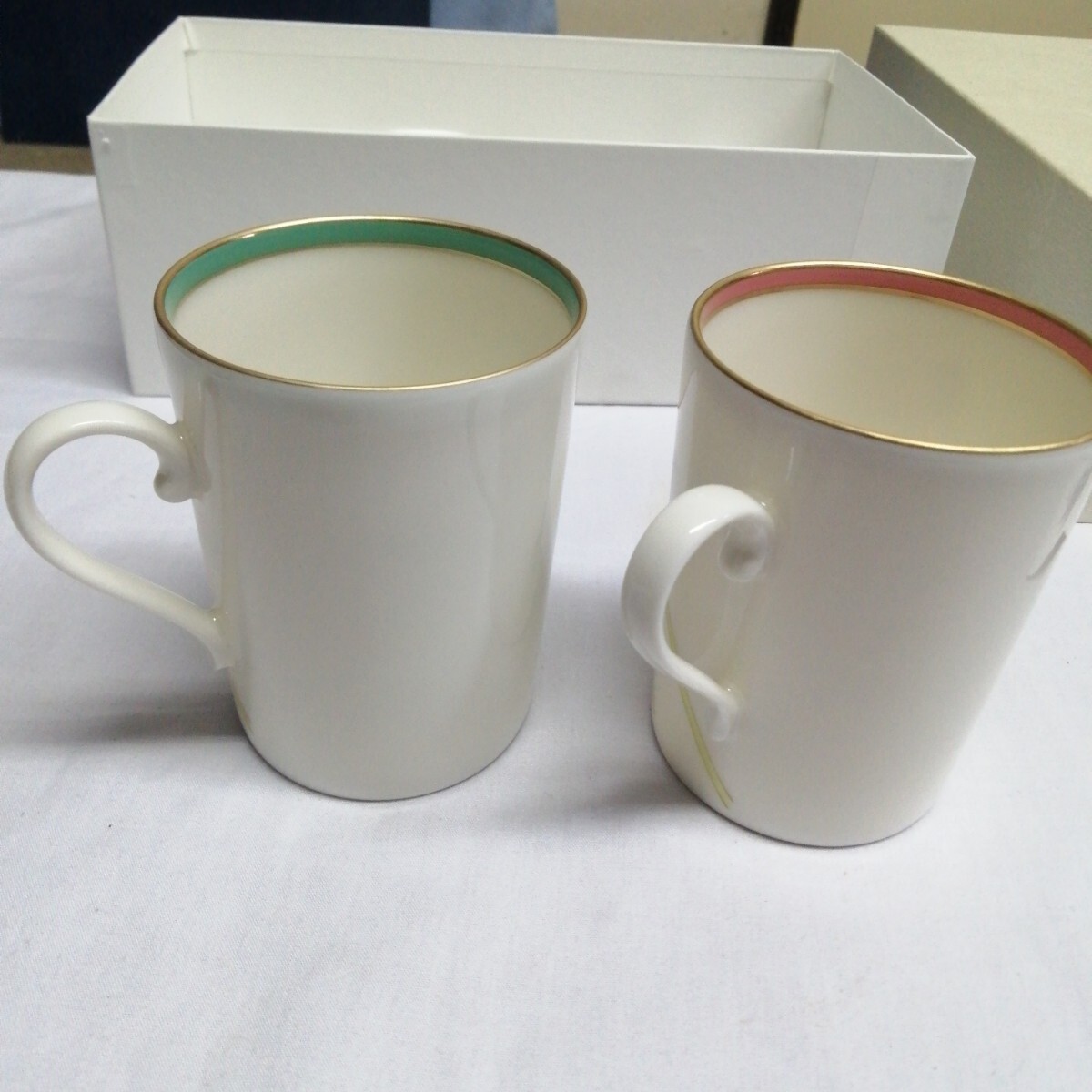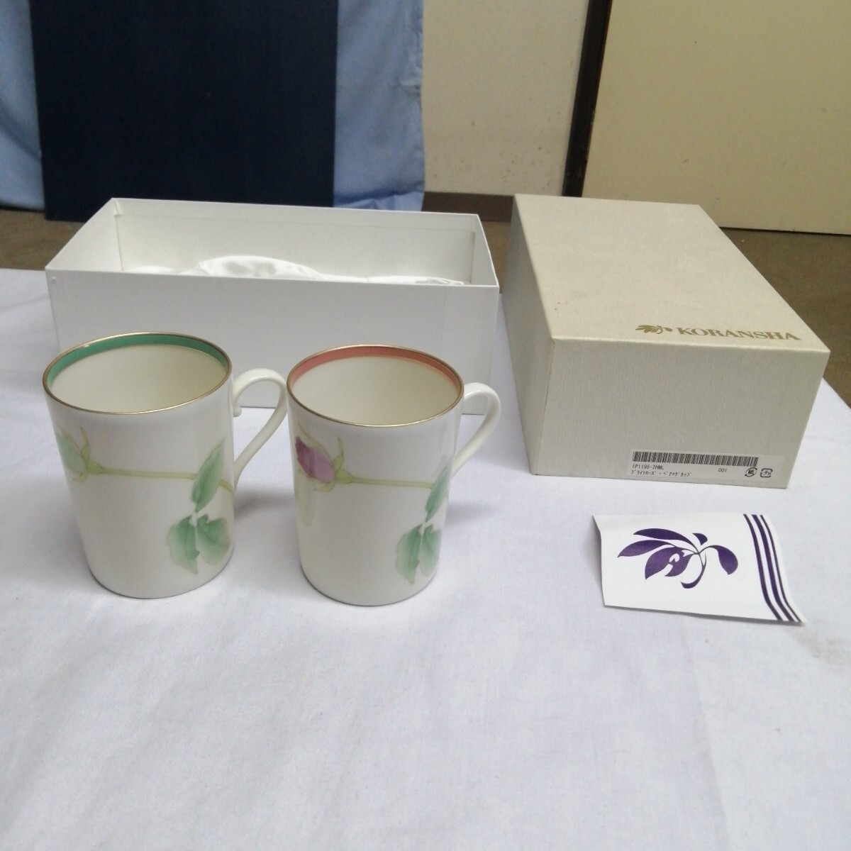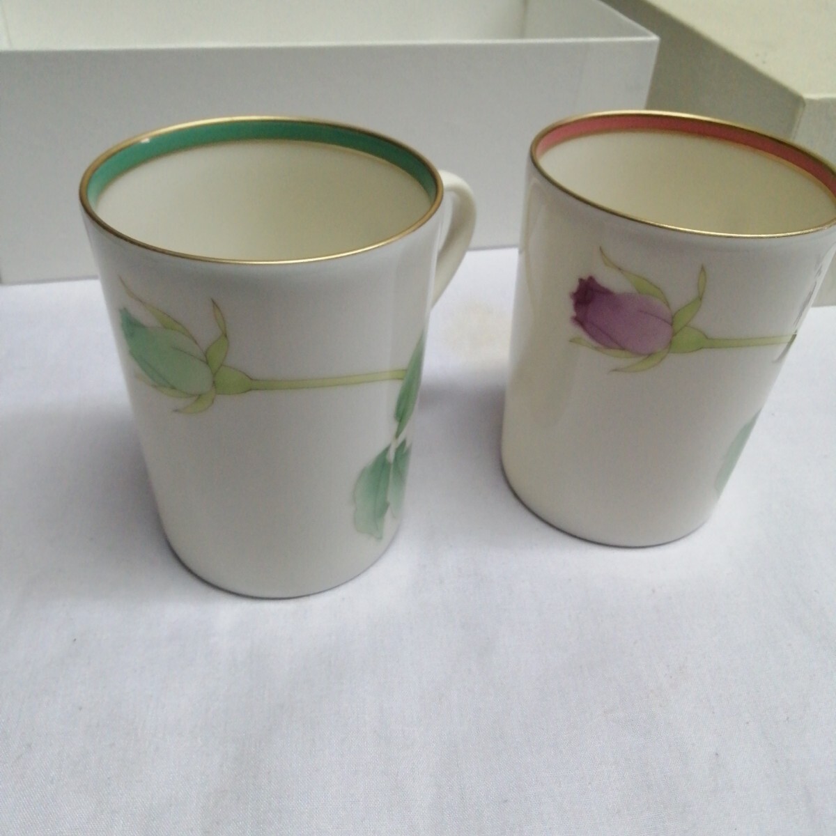 未使用品 有田焼 香蘭社 ブライトローズ ペアマグカップ KORANSHA 金彩 夫婦 マグカップ