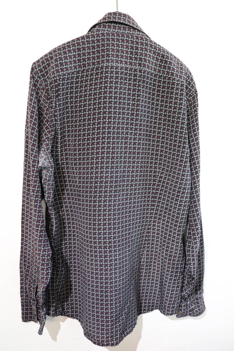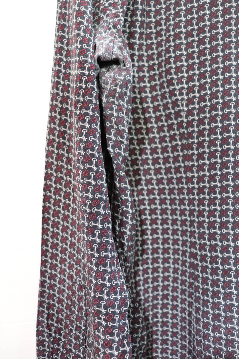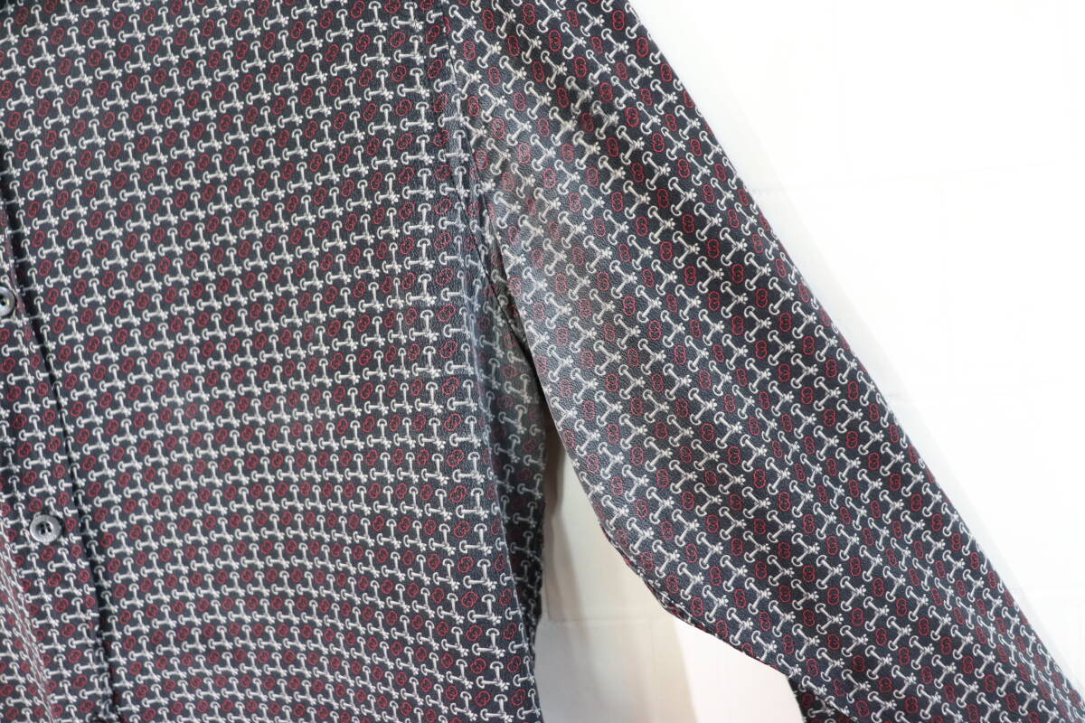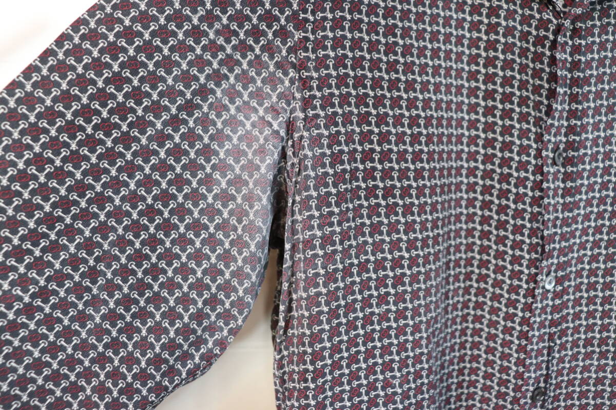 即決 GUCCI グッチ GGマーク&ホースビット総柄 長袖ドレスシャツ シルクシャツ メンズ 42 16 1/2 イタリア製 ブラック レッド シルバー