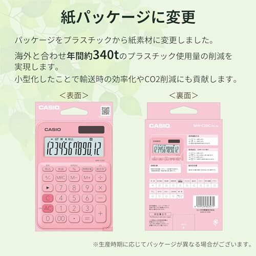 カシオ カラフル電卓 ペールピンク 12桁 ミニジャストタイプ MW-C20C-PK-N