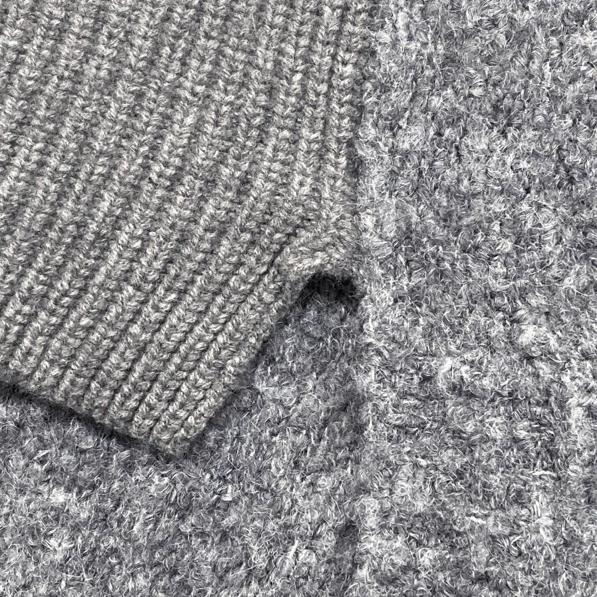 ふわふわなループヤーンと、太番手のストレートヤーンが切り替えられたニット生地のお品です。