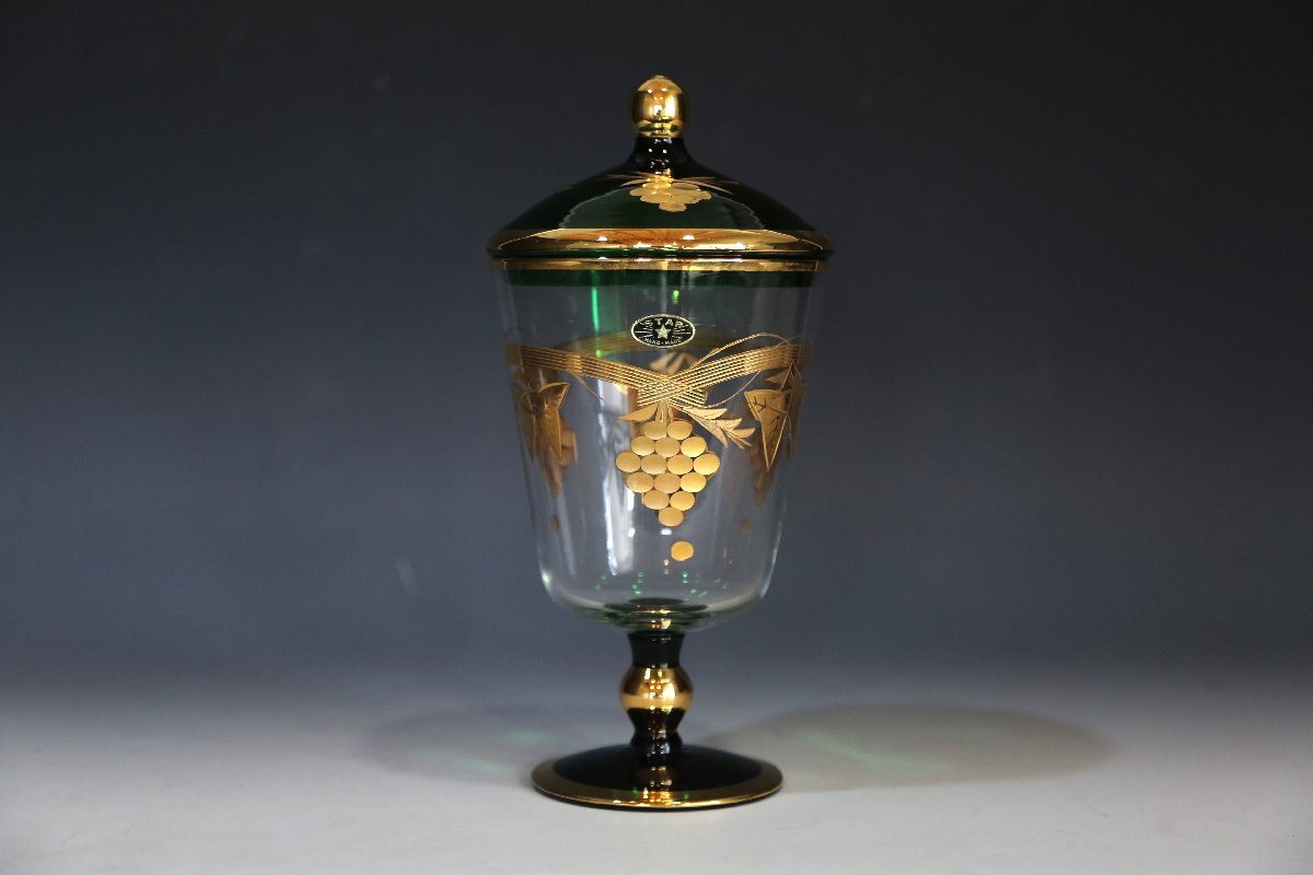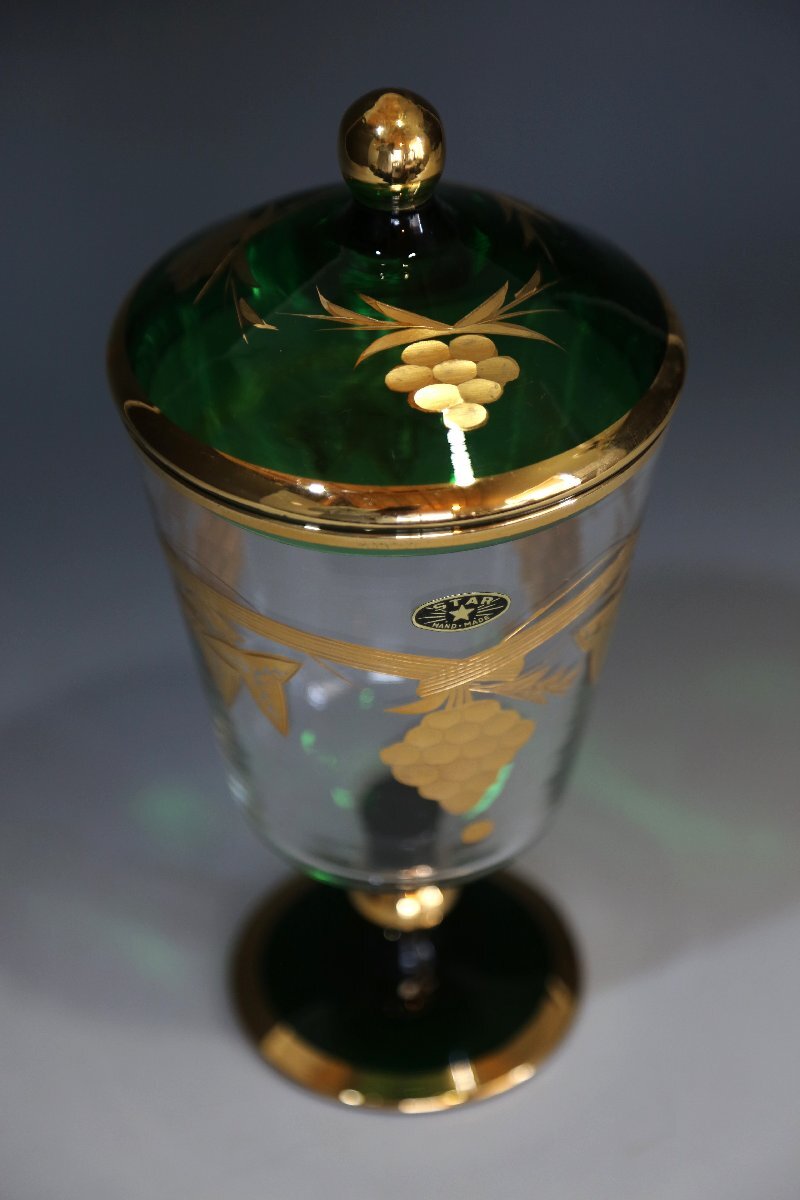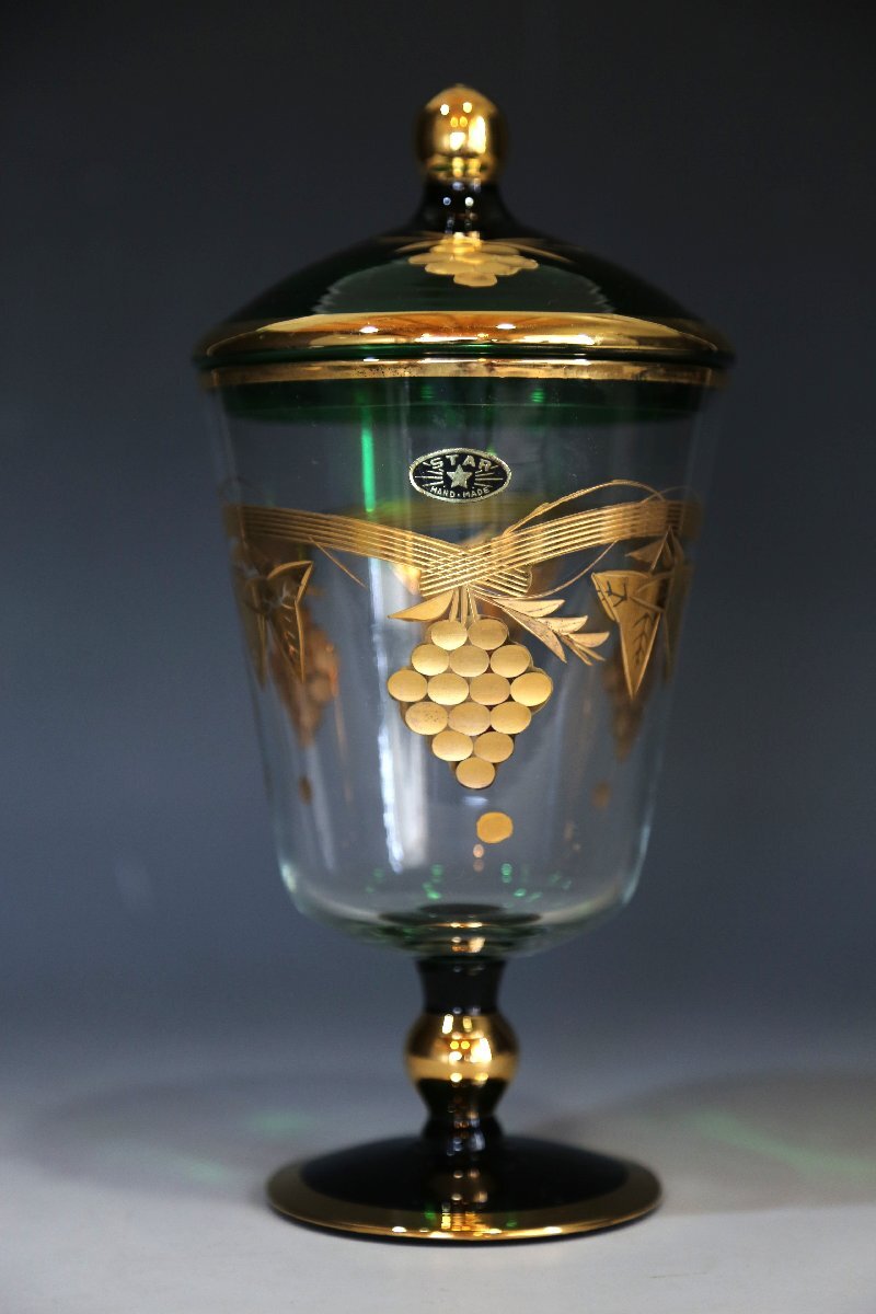 ★★★ アンティーク ハンドメイド STAR ガラス 緑蓋物 ★★★ 50