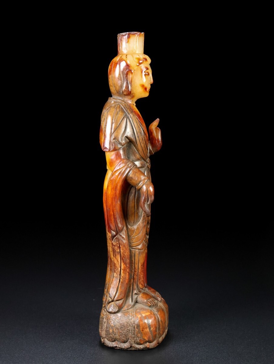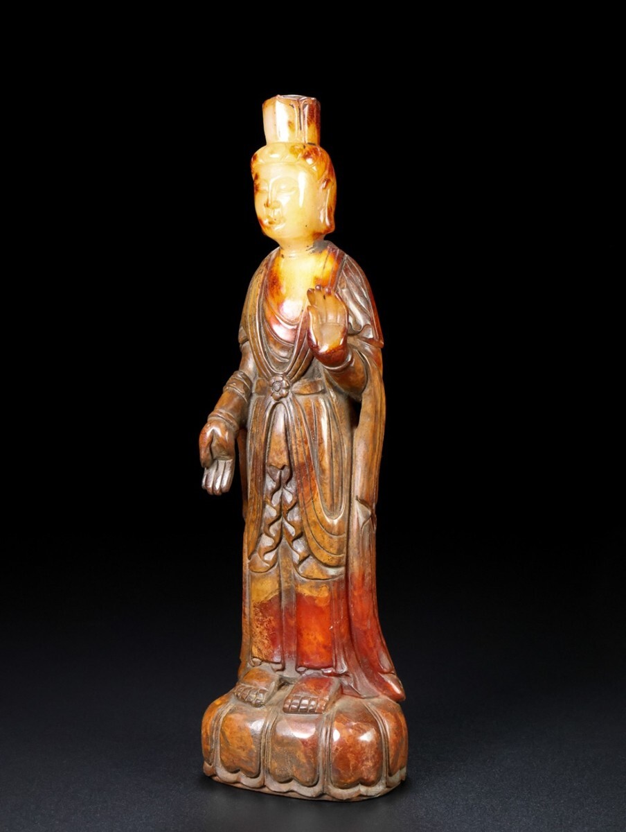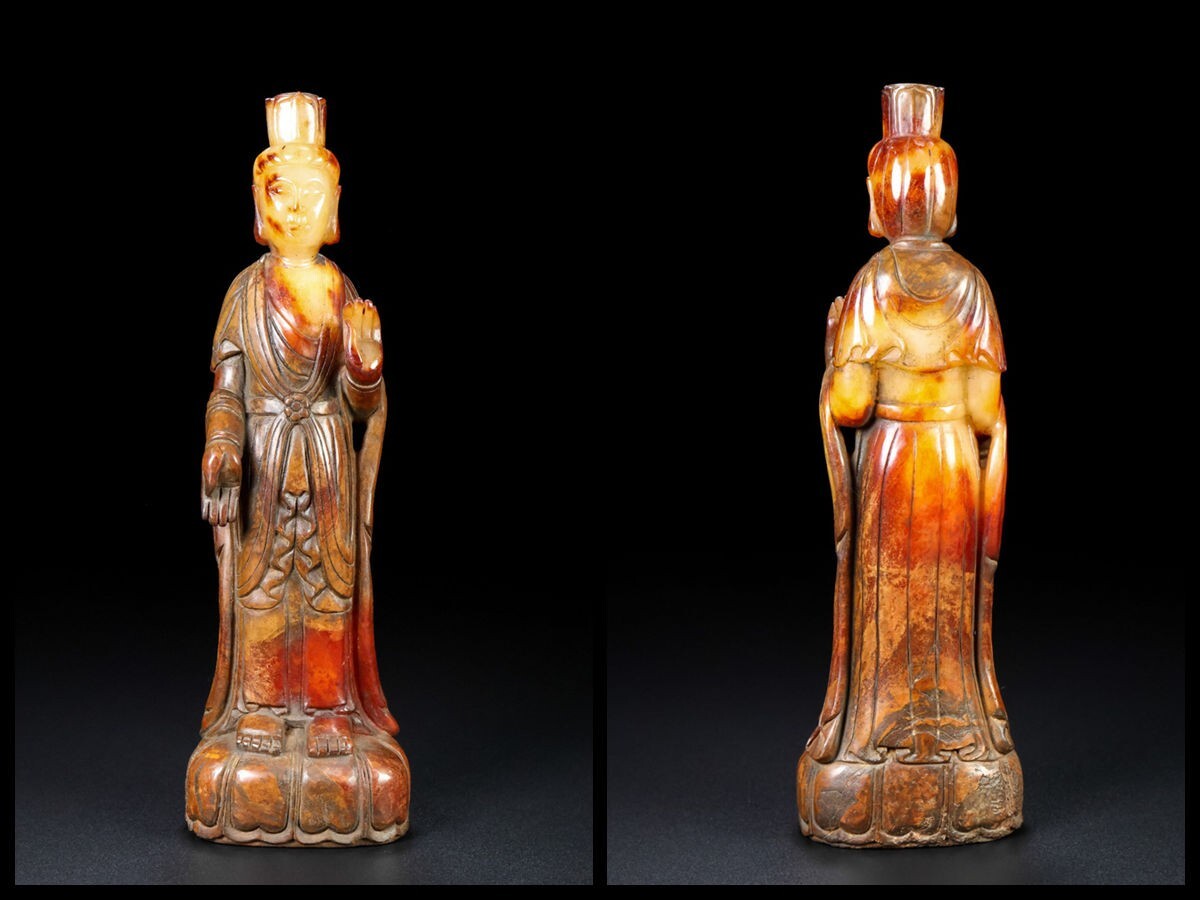 「時代物 和田玉 高古玉彫り 仏像」極細工 擺件 中国古賞物 古美術 旧蔵出