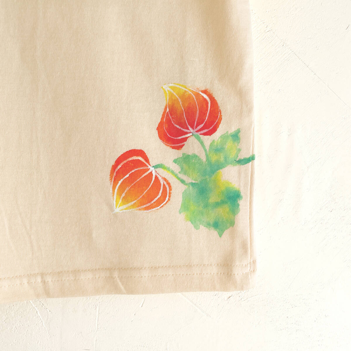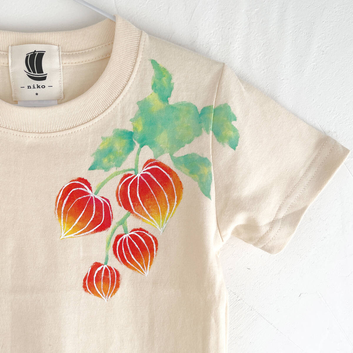 ハンドメイド 手描きTシャツ キッズTシャツ ホオズキ柄Tシャツ 手描きで描いた鬼灯柄のTシャツ ナチュラル | |||