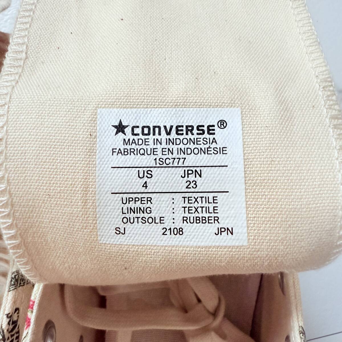 CONVERSE × PINK HOUSE ピンクハウス 50周年記念 コラボ スニーカー サロンドフレーズ柄 ALL STAR 100 HI スニーカー 23㎝ 未使用になります。 ★時代を超えて愛されるCONVERSEとのコラボレーション。 CONVERSEの「ALL STAR 100 HI」のボディに、 PINK HOUSEの「サロンドフレーズ柄」の限定モデルです。 ★定価:¥19,800(税込) ★サイズ 23㎝ ★状態 未使用 良い状態です。自宅保管品もご理解の上、ご検討頂けましたら幸いです。 | ||||||||