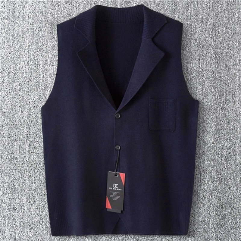 新品 DCKMANY ウール混 前開きベスト 袖なし ベスト メンズ V首 ステンカラー ベストカーディガン ニットベスト秋冬 暖かい 紺 T5159-2XL