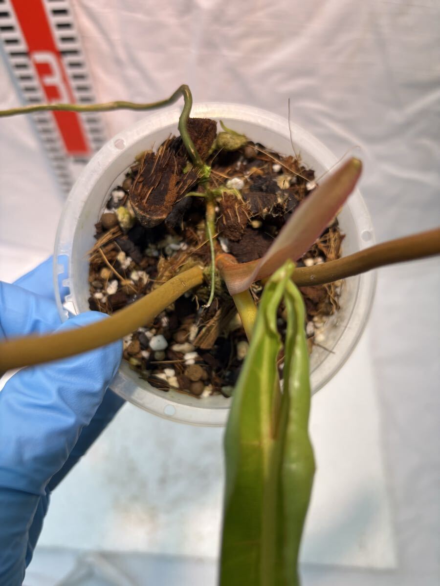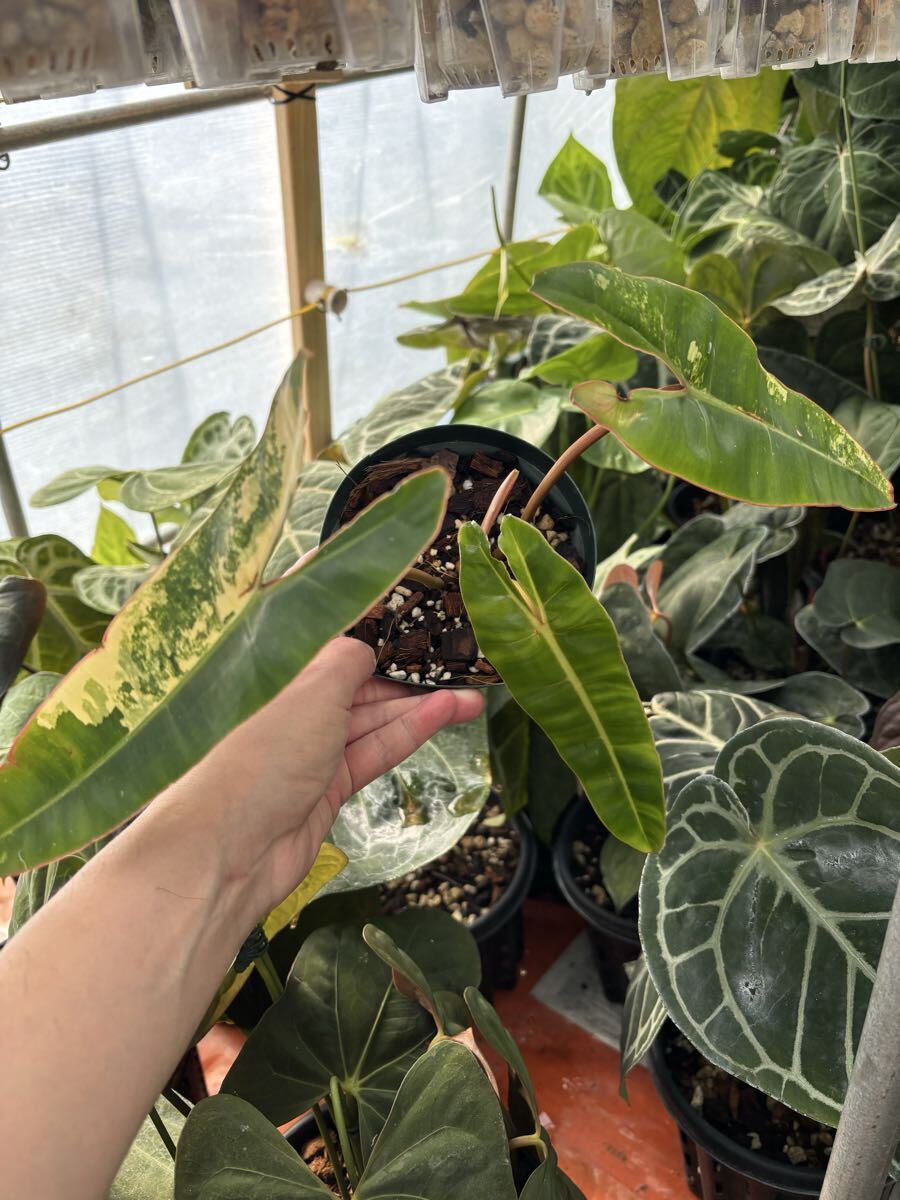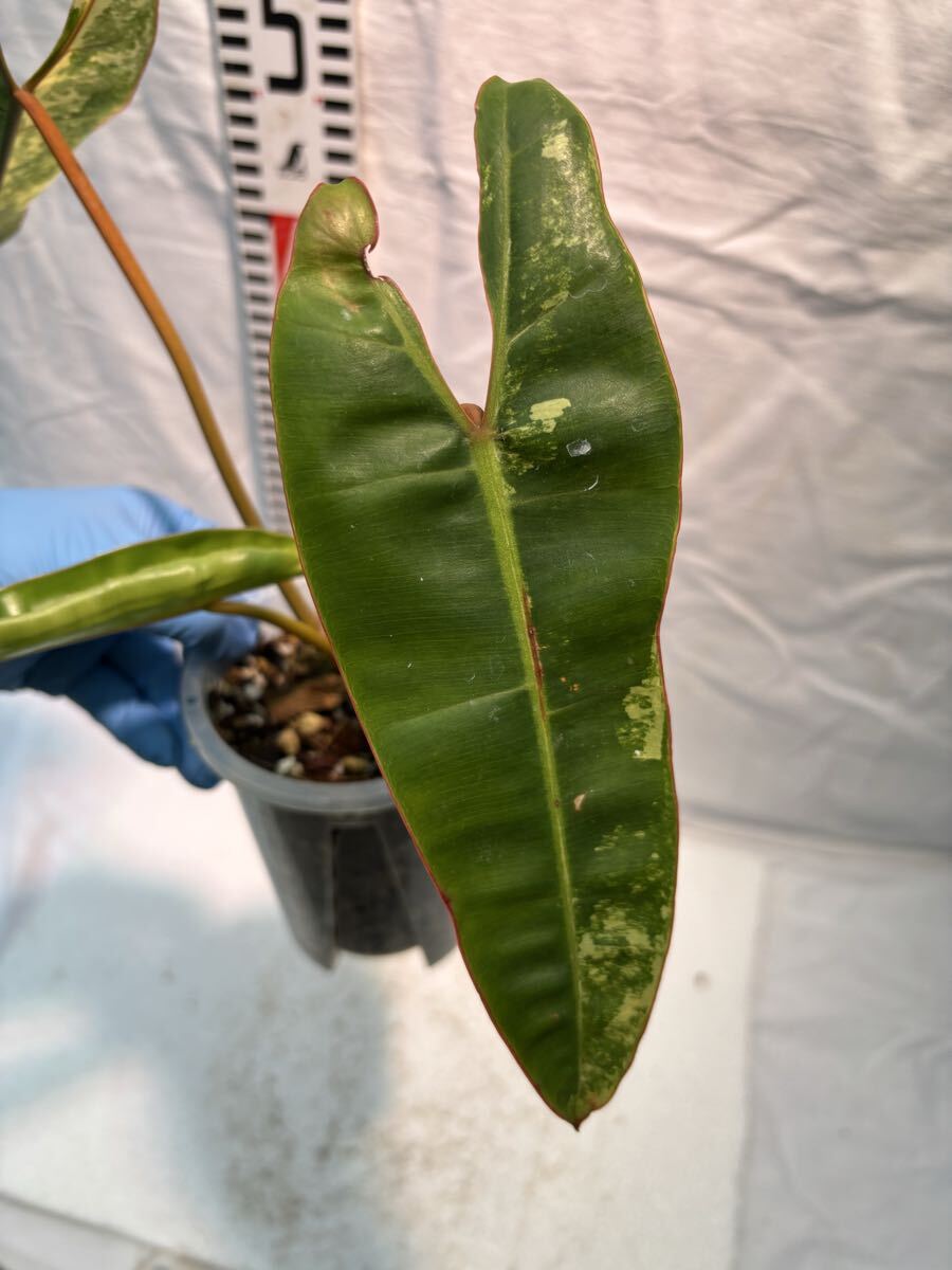 当個体はトップカットクローンにまりますが、私がタイの複数の農園で見た感覚で言えば、クローンで増えた個体は斑の量に違いはあるものの安定して発現しているということです。フィロデンドロンの斑入りはかなり暴れることで有名ですが、ビレッティアに関しては真緑になってもまた斑入りが復活している個体を沢山見てきました。なので、まだ値段の高い不確実なTCよりカットクローンを入手することが硬いと考えています。