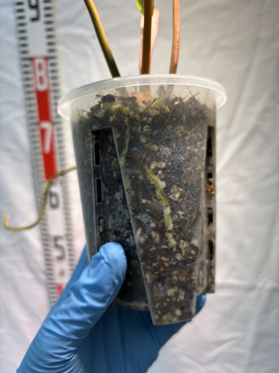 11月12日に長い根が外に飛び出ているので一回り大きい4号ロングスリットに鉢増しいたしました。ご承知おきください。