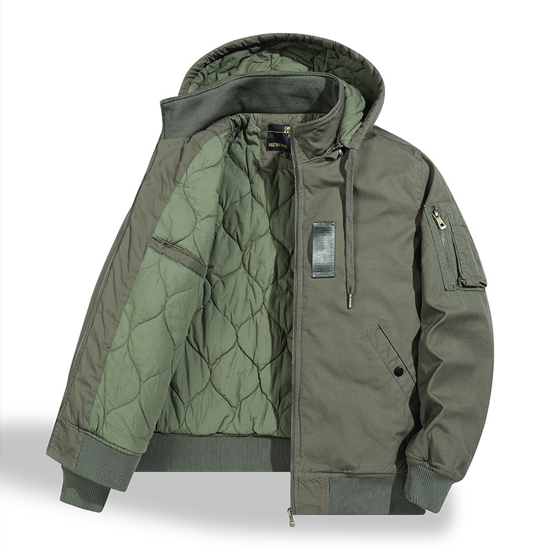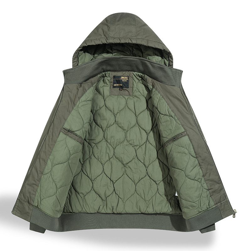 中綿ジャケット ミリタリージャケット パーカー 新品・メンズ コート アウター フード付き アウトドア ヴィンテージ 厚手冬用【X82】グリーン 2XL