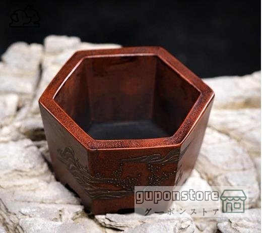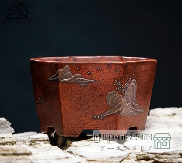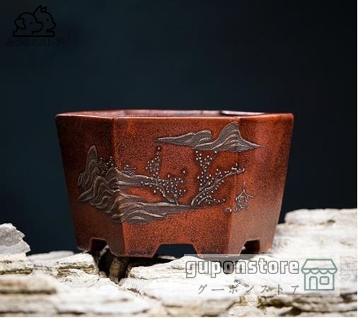 【商品詳細】状態:新品未使用使い込まれより良く古みの出て趣のある鉢が現在数多くの展示会にも使用され実用鉢としての価値を不動のものとしました。盆栽に合うように作られた中国鉢です。特に松柏盆栽に似合います。素材:紫泥サイズ:幅:10.5cm 高さ:6cm容量:200cc以下※