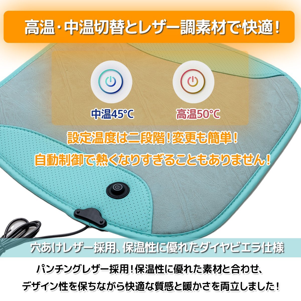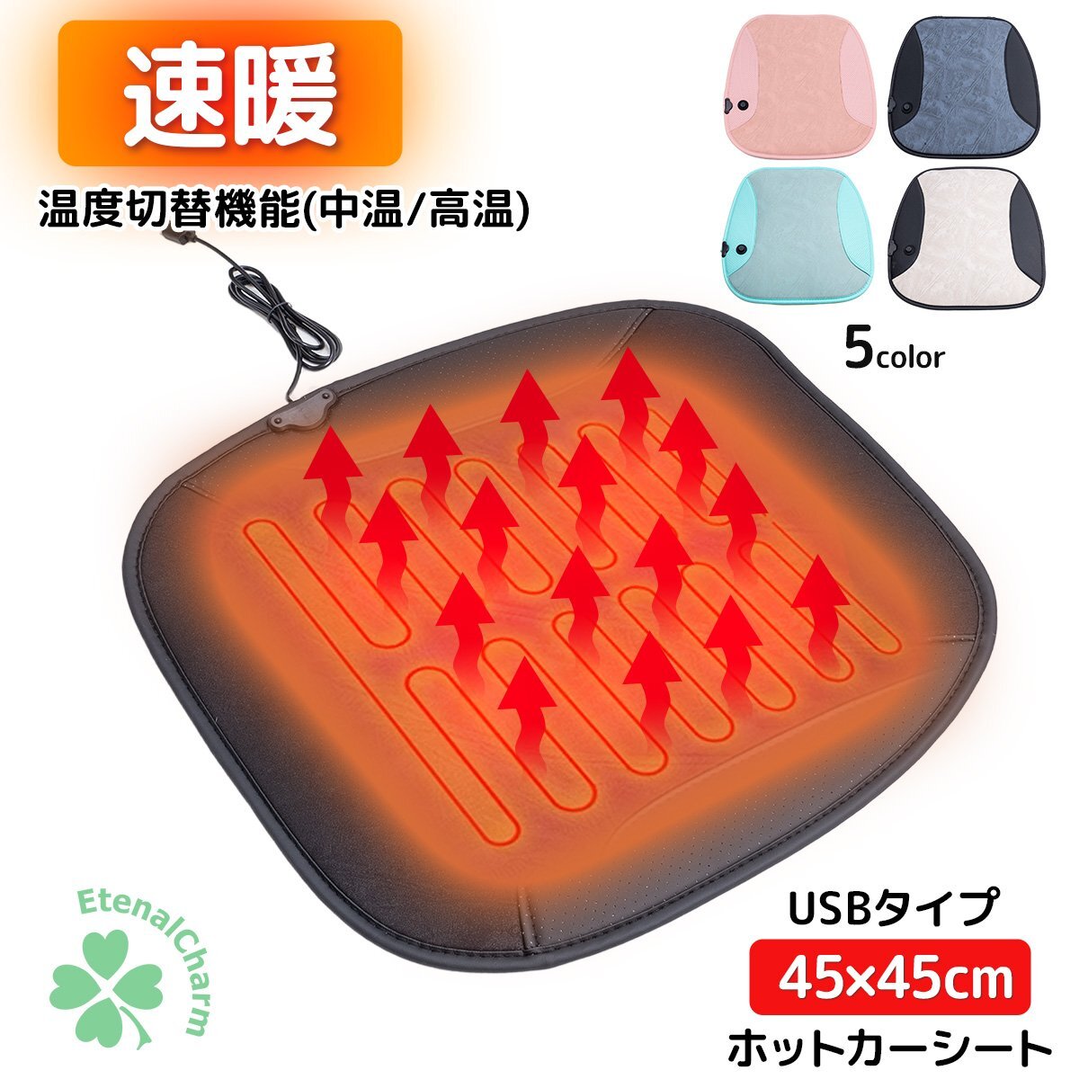 ホットマット カーシート ヒータークッション USBタイプ シートヒーター 即暖 座席 ホット 座布団 2段階温度調節 5色選択 クリックポスト