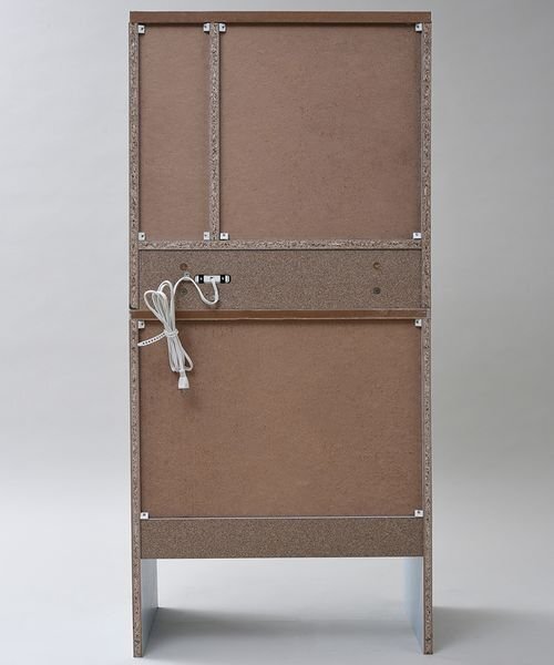 | 【サイズ】 <外寸> ドレッサー:幅60.5×奥行40.5×高さ130.5cm スツール:幅33×奥行29×高さ42cm <内寸> ★ドレッサー★ 作業面:幅60×奥行36×高さ70cm ミラー下収納部:幅56×奥行14×高さ11.5cm 引出し:幅53×奥行32×高さ6(有効7.5)cm 左ミラー扉内収納部:幅10.5×奥行12.5×高さ42cm 中央ミラー扉内収納部:幅25×奥行12.5×高さ42cm 右ミラー扉内収納部:幅10.5×奥行12.5×高さ42cm 左・中央ミラー扉内可動棚:幅40×奥行10.5×厚み1.2cm(3.2cmピッチ7穴) 右ミラー扉内可動棚:幅14×奥行10.5×厚み1.2cm(3.2cmピッチ7穴) ★スツール★ 収納部:幅29.5×奥行25cm オープン部:幅29.5×奥行25.5×高さ8.5(上段)/高さ15(下段)cm スツール可動棚:幅29.5×奥行25.5×厚み1.5cm(3.2cmピッチ3穴) 【材質】 本体:合成樹脂化粧パーティクルボード(ポリ塩化ビニル) 【耐荷重】 作業面:(約)10kg以下 引出し:(約)4kg以下 可動棚大:(約)3kg以下 可動棚小:(約)2kg以下 【生産国】 中国 【梱包】 サイズ:86×45×25cm、重量:29kg 【その他】 ・可動棚:(ドレッサー)大2枚、小2枚、(スツール)1枚 ・合計1500W2口コンセント付/コード長さ196cm 【組み立て品】 お客様による組み立てが必要です。 |